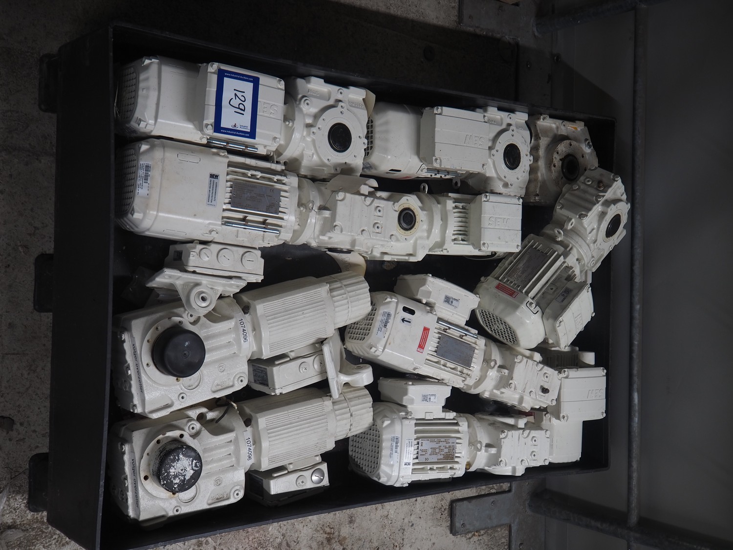 Pallet with large amount of SEW-Eurodrive electromotors.