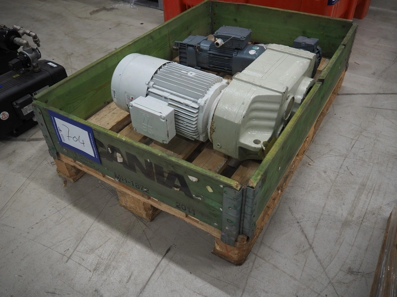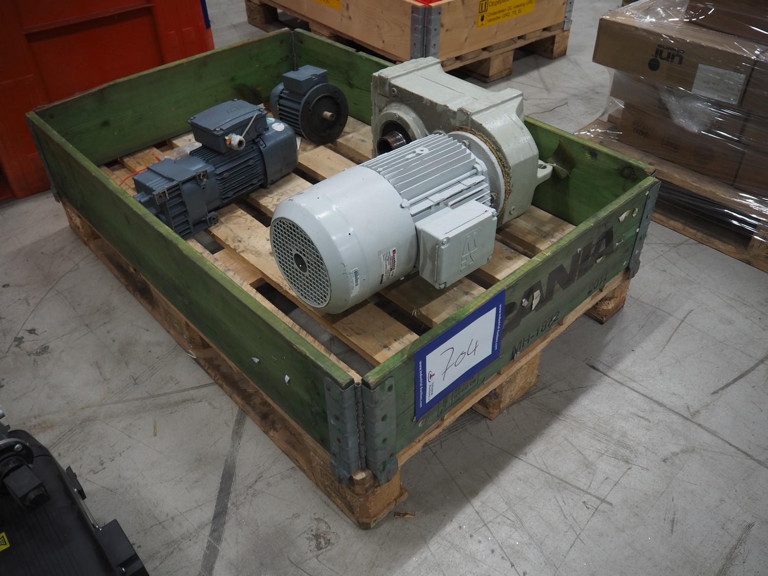 Pallet with 2 SEW motors and 1 VEM motor, dimensions pallet: 1200 mm x 800 mm x 400 mm.