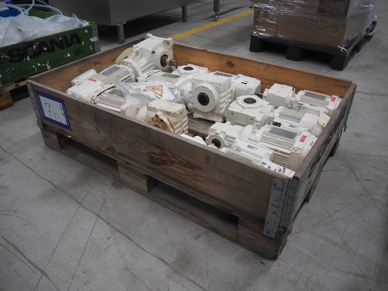 8 pcs. SEW-Eurodrive motor, model: K 67 / SA 47 / SA 57 / R 17 / KA 19 / SA 37, total dimensions: 1200 mm x 800 mm x 400 mm.