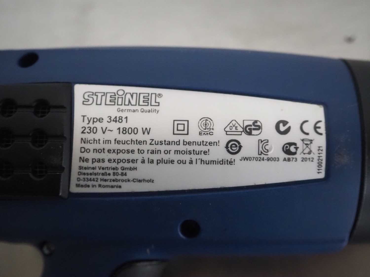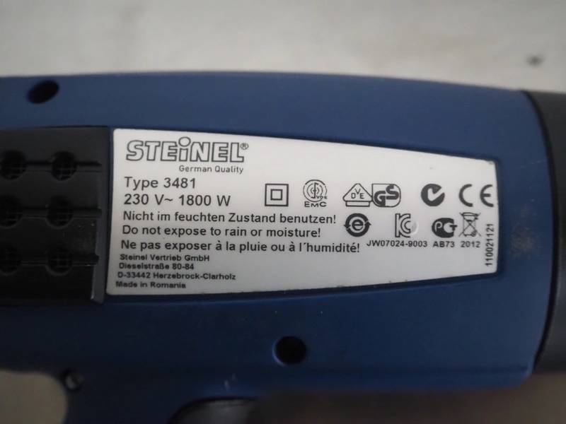 Steinel hot air gun, 230 V, 1800 W, dimensions: 250 mm x 280 mm x 100 mm. Technical condition unknown