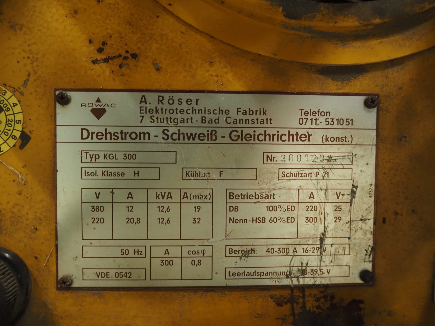 Röwac welding machine, type: KGL 300, number: 3001232, dimensions: 410 mm x 780 mm x 740 mm, 410 mm x 1050 mm x 760 mm.