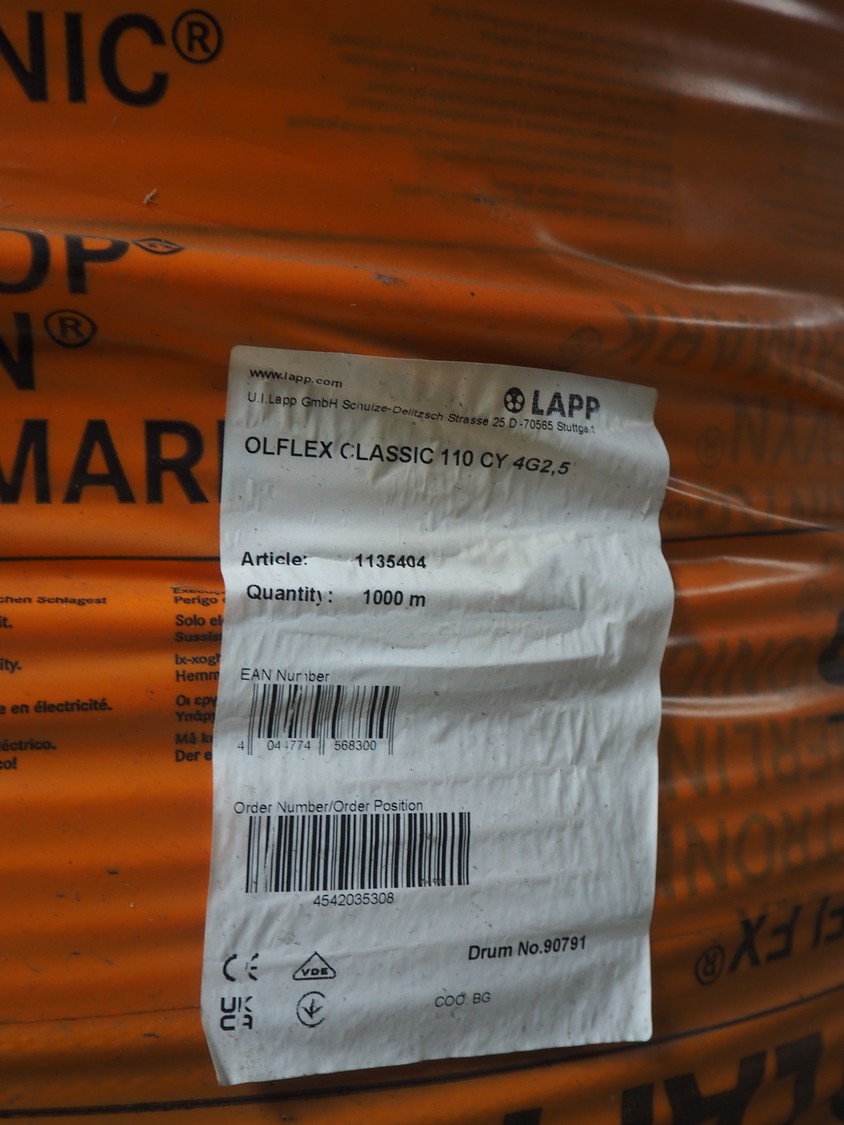 Lapp control cabel, type: ÖLFLEX CLASSIC 110 CY 4G2.5, dimensions: ø 900 mm x 480 mm.