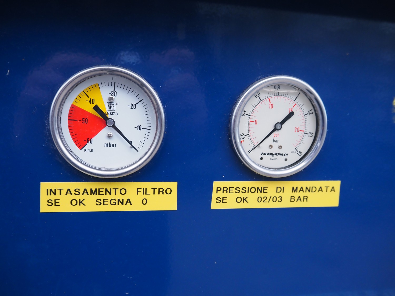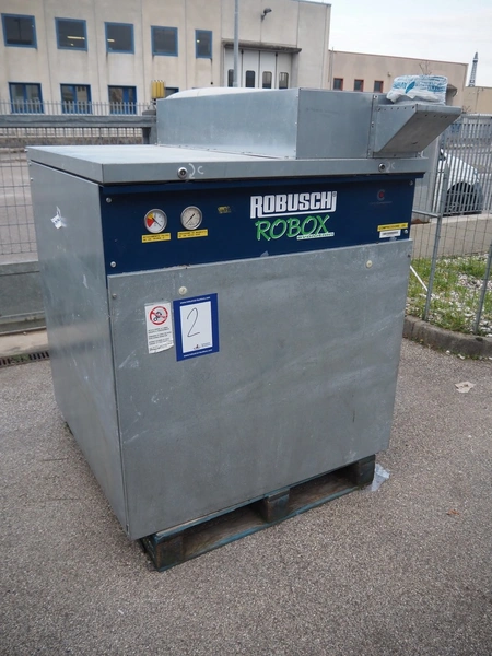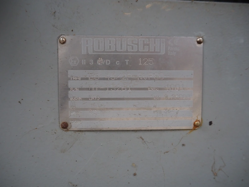 Robuschi positive displacement blower, type: ES 45/2P-RVP80, serial number: A7-13261, capacity: 509 m³ per hour, dimensions: 1150 mm x 1250 mm x 1560 mm.
