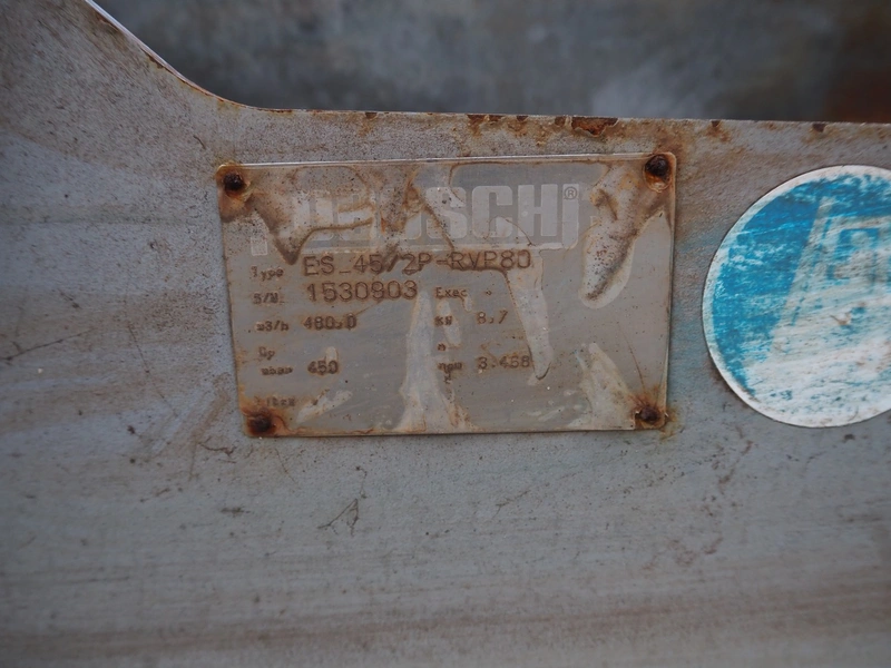Robuschi positive displacement blower, type: ES_45/2P-RVP80, serial number: 1530903, 8.7 kW, capacity: 480 m³ per hour, dimensions: 900 mm x 1000 mm x 1050 mm.