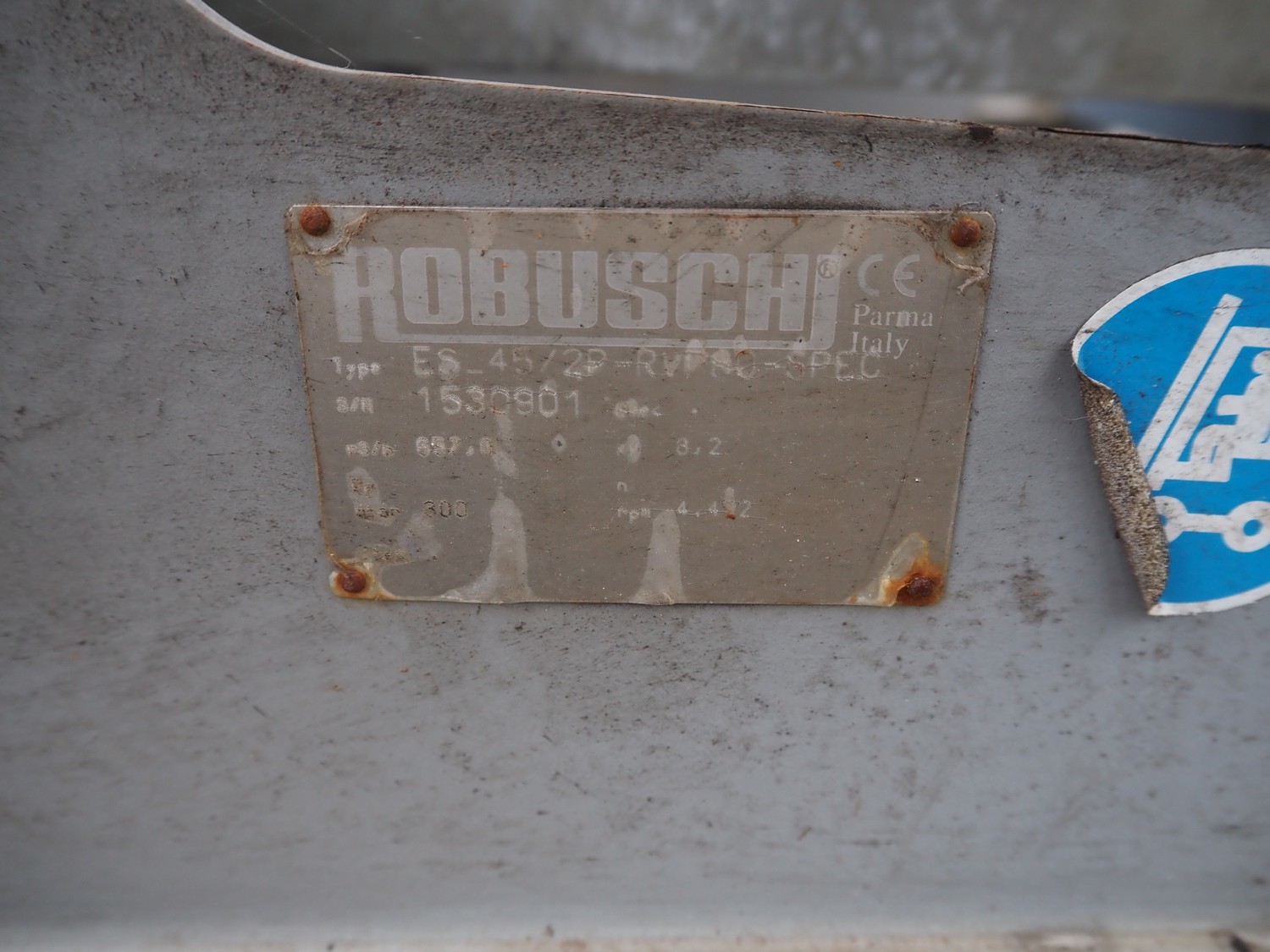 Robuschi positive displacement blower, type: ES_45/2P-RVP80-SPEC, serial number: 1530901, 8.2 kW, capacity: 657 m³ per hour, dimensions: 1100 mm x 11580 mm x 1100 mm.