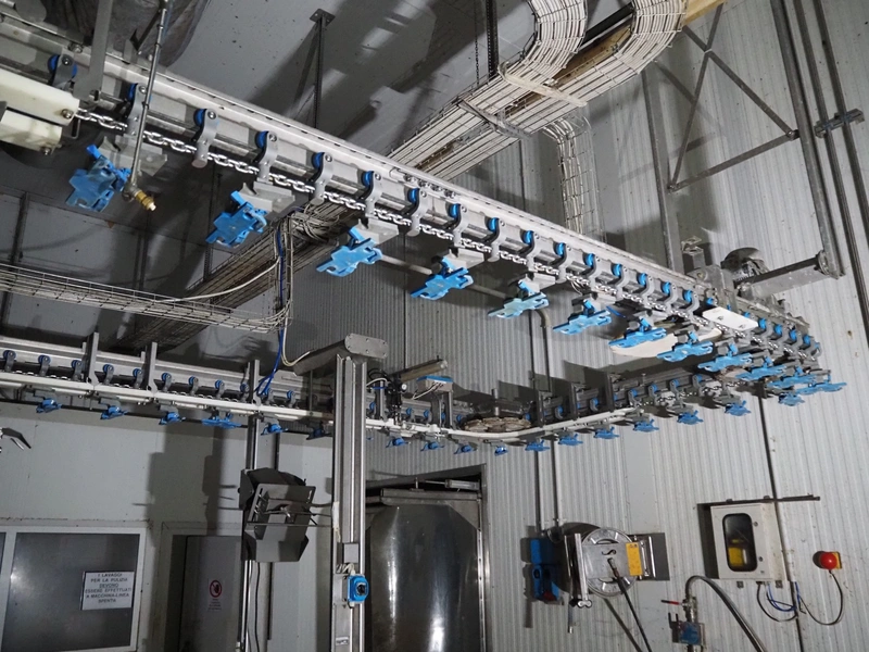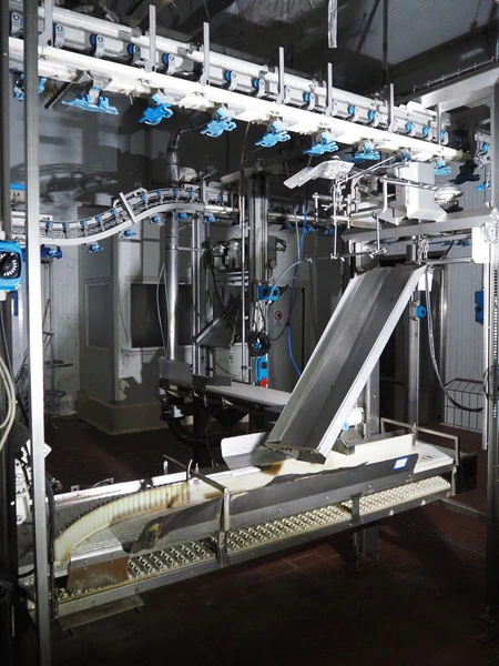 Stork PMT B.V. automatic cut-up line, capacity: 9.000 broilers per hour, consisting of the following modules: