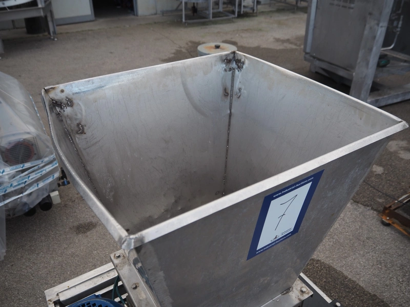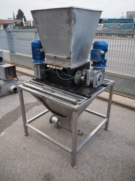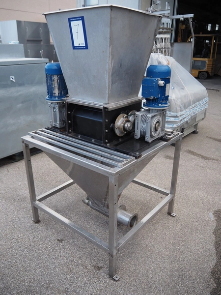 Leg triturator, working width: 370 mm, total dimensions: 1000 mm x 950 mm x 1750 mm.