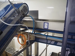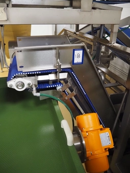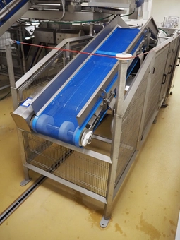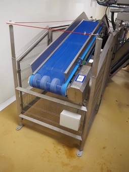 Cosmo Food Machinery s.r.l. elevating belt, plastic mesh belt width dividers, belt width: 450 mm, divider height: 25 mm, distance b…