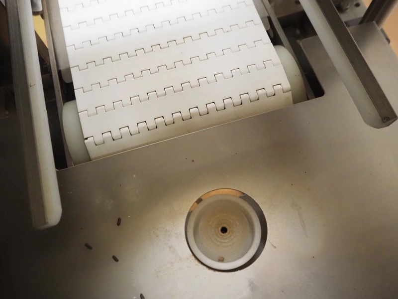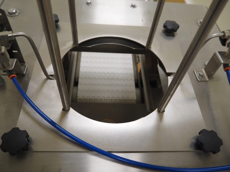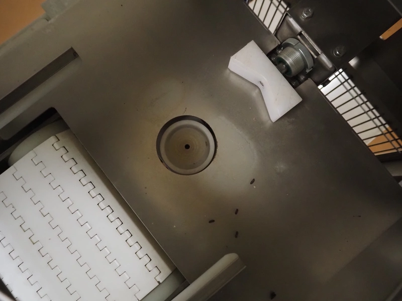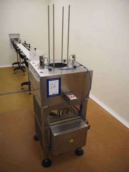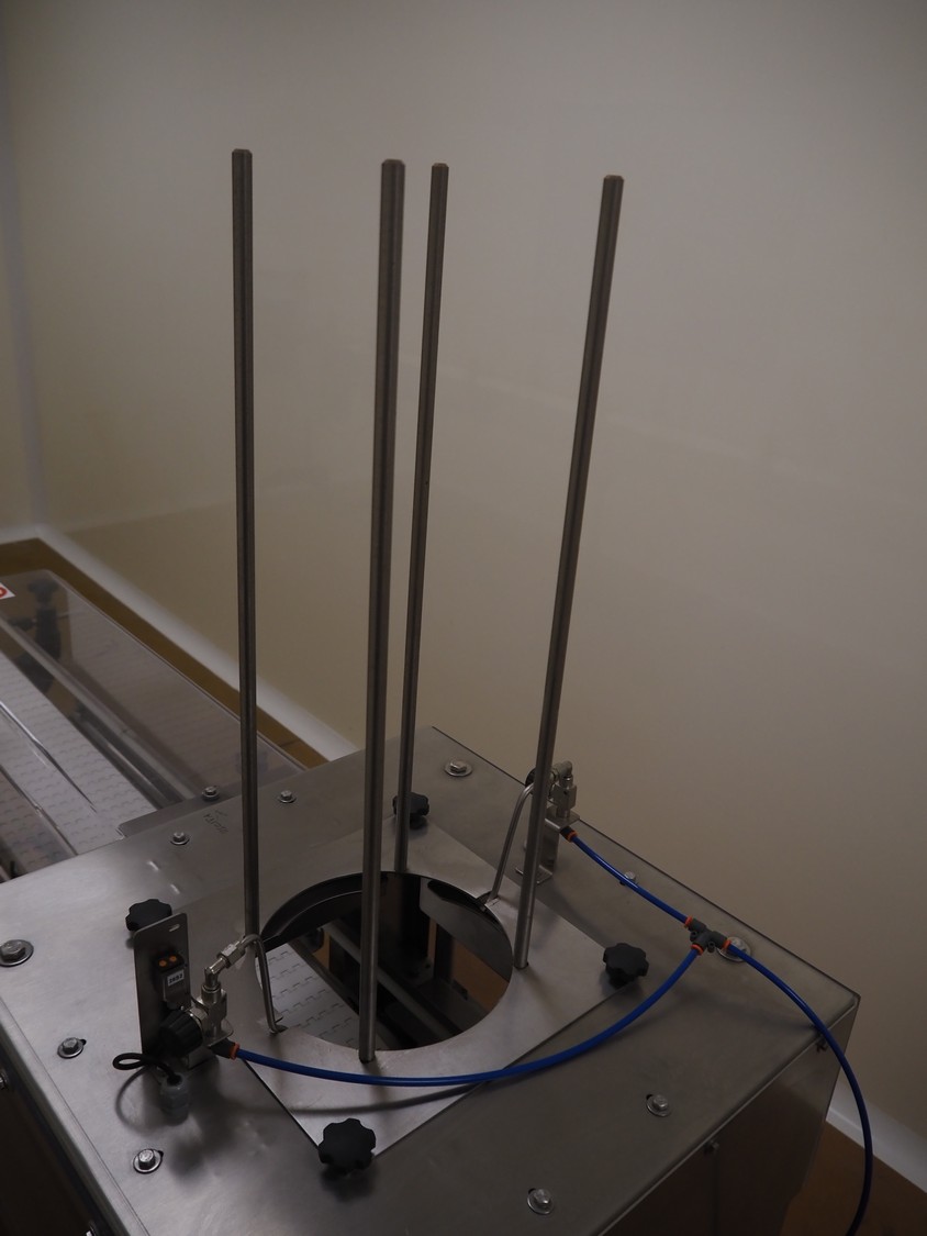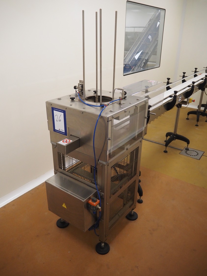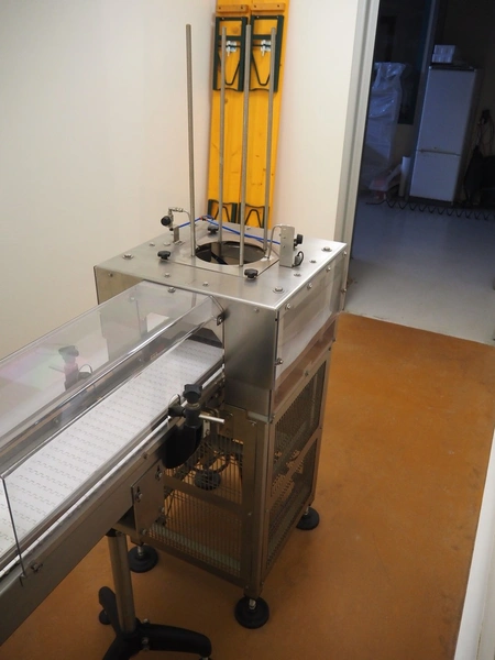 Tray denester, diameter trays: 200 mm, total dimensions: 700 mm x 600 mm x 1800 mm.