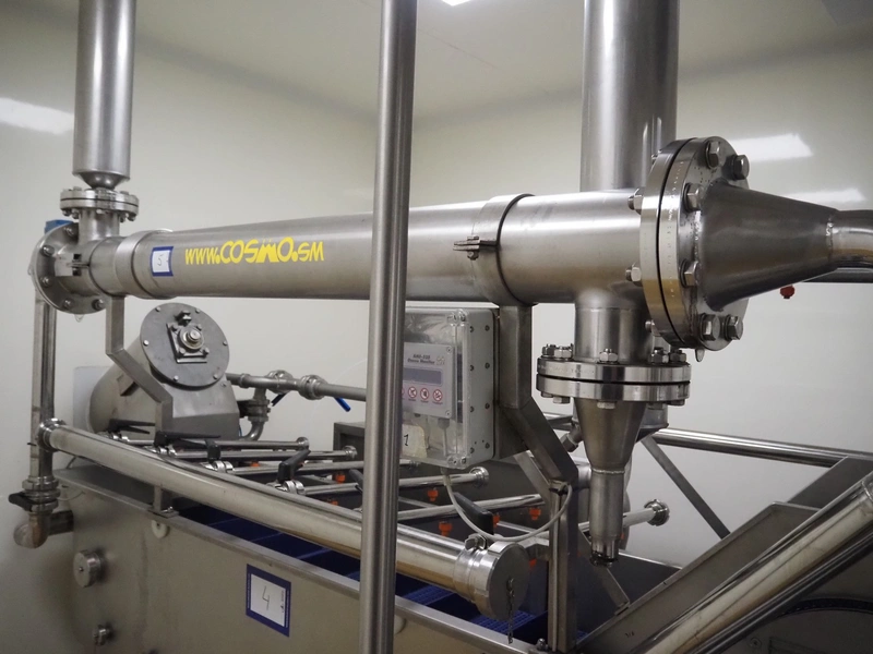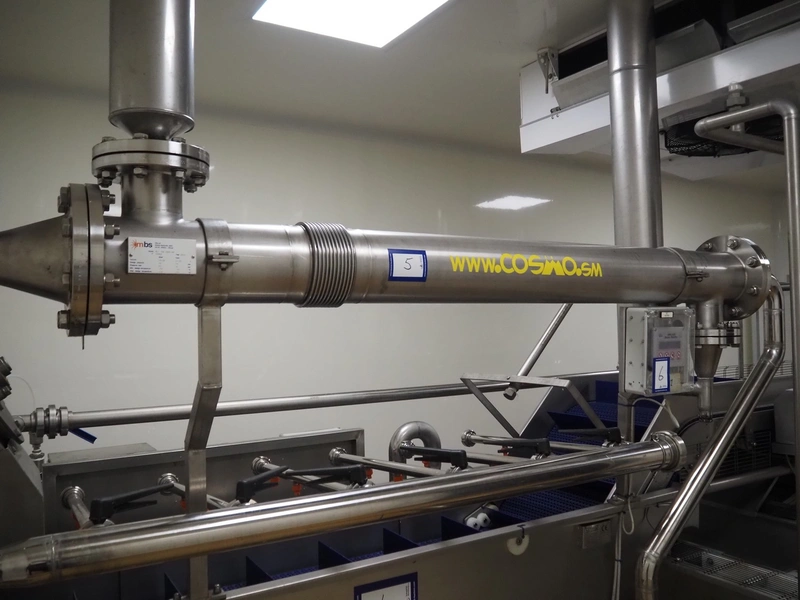 MBS s.r.l. tubular heat exchanger, model: MLI 168 2000 BA, number: 12463, year of construction: 2015, volume: 19.26/17.91 liter, design pressure: 10 bar, minimum temperature: -10°C, maximum temperature: 110°C, dimensions: 2000 mm x 280 mm x 280 mm.