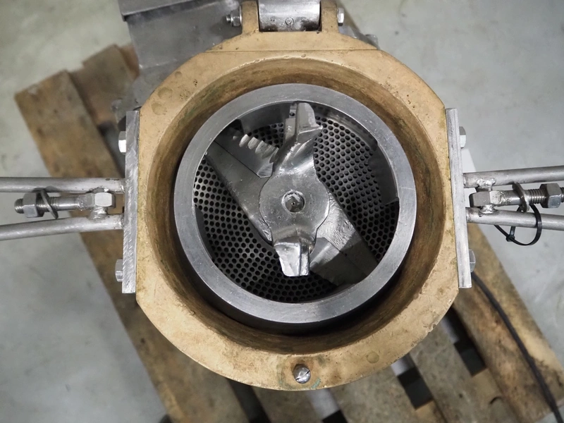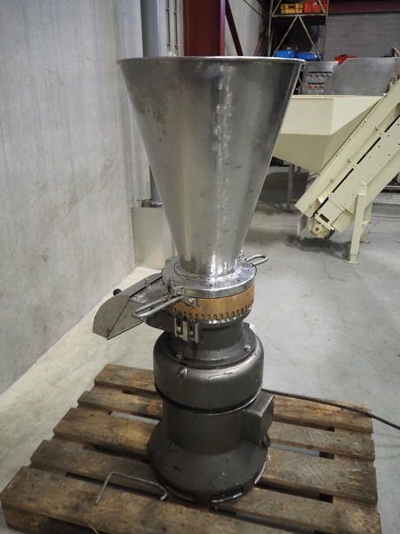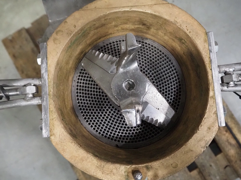 Juicer, perforations: 4 mm, total dimensions: 580 mm x 620 mm x 1300 mm.