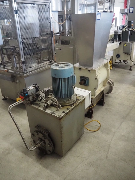 Water separator with press, outfeed diameter: 30 mm, total dimensions: 2500 mm x 600 mm x 1500 mm.