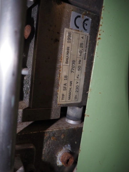 Cap feeder, type: SFA 18, machine number: 77039, year of construction: 1998, 230 V, 50 Hz, 0.25 A, dimensions: 900 mm x 650 mm x 470 mm.