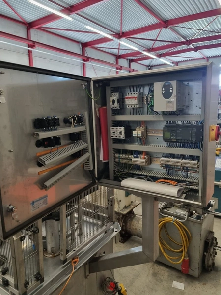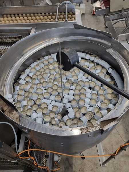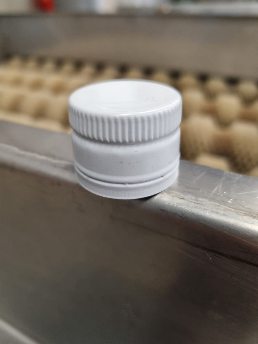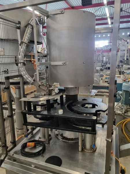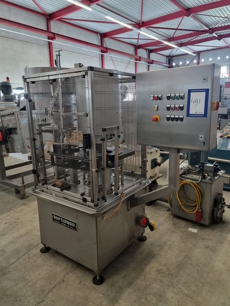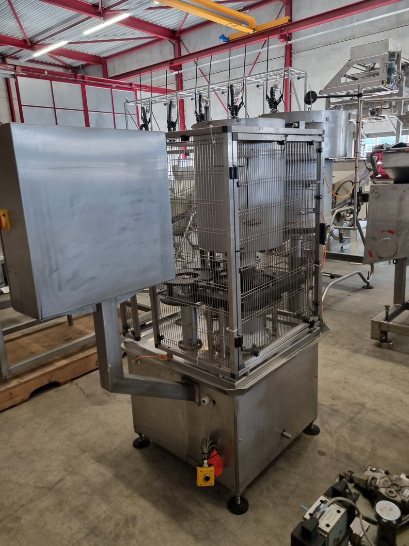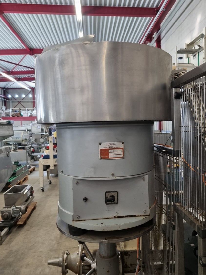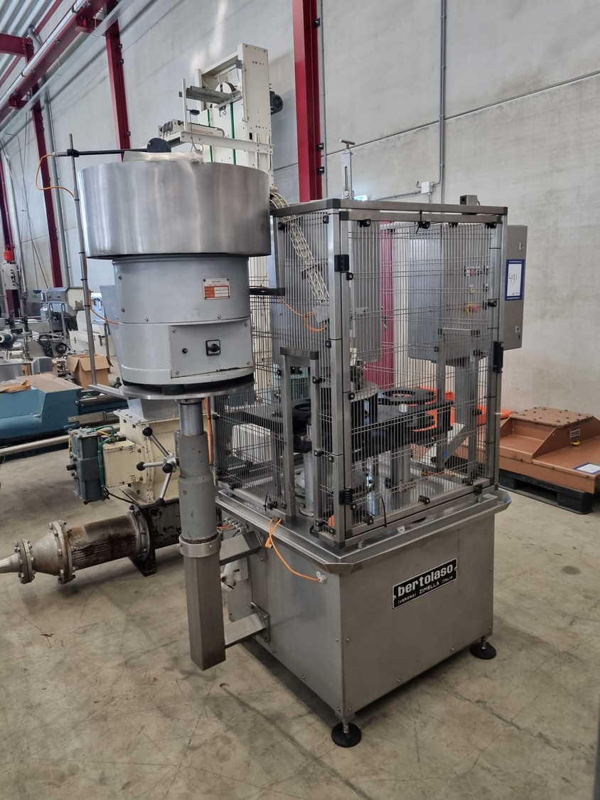 Bertolaso lid closing machine, suitable for alcoa lids, lid diameter: Ø 32 mm x 24 mm, suitable for glass bottles with diameter: Ø80 mm, weight: 750 kg, total dimensions: 2100 mm x 1000 mm x 2100 mm.