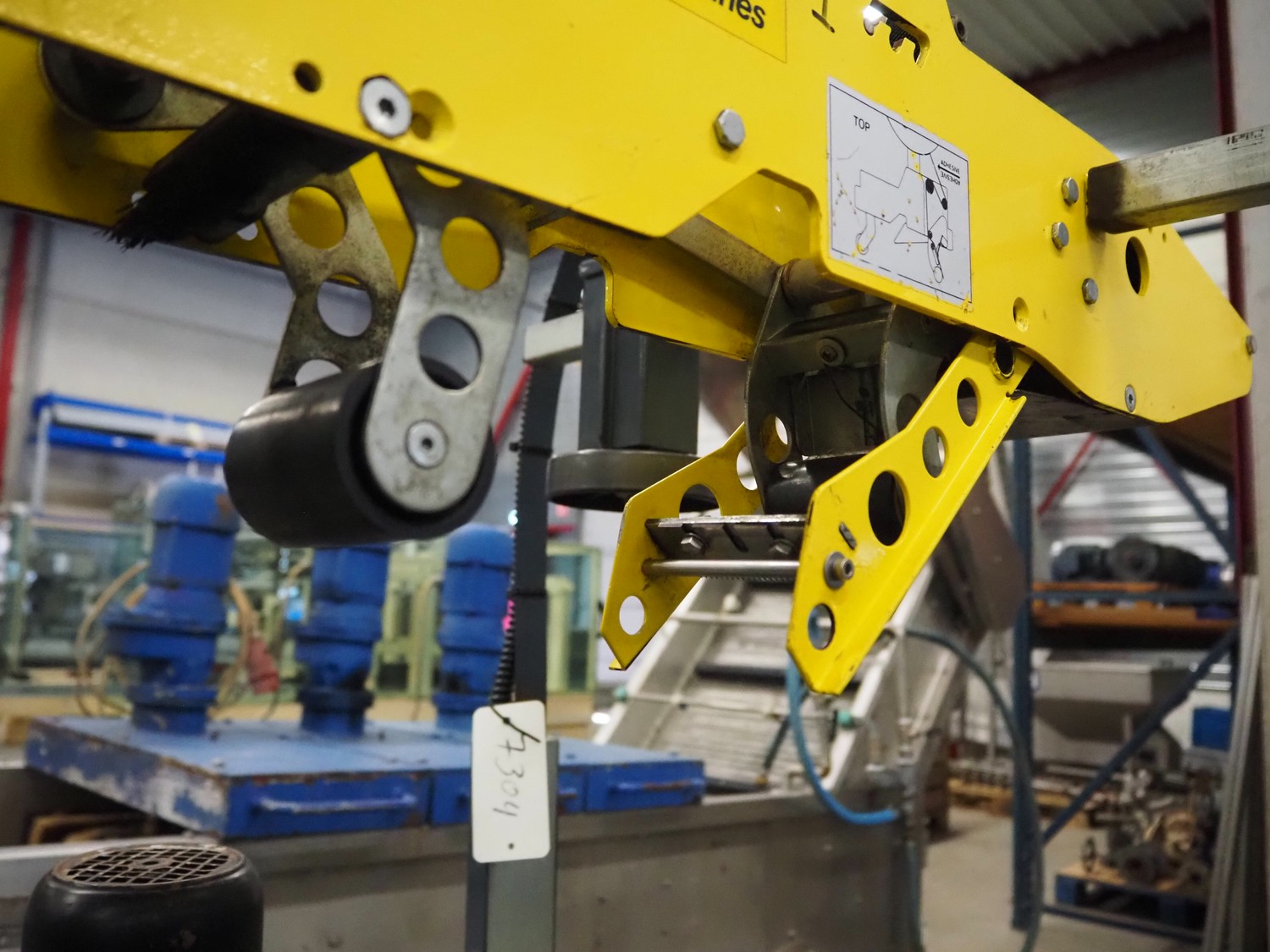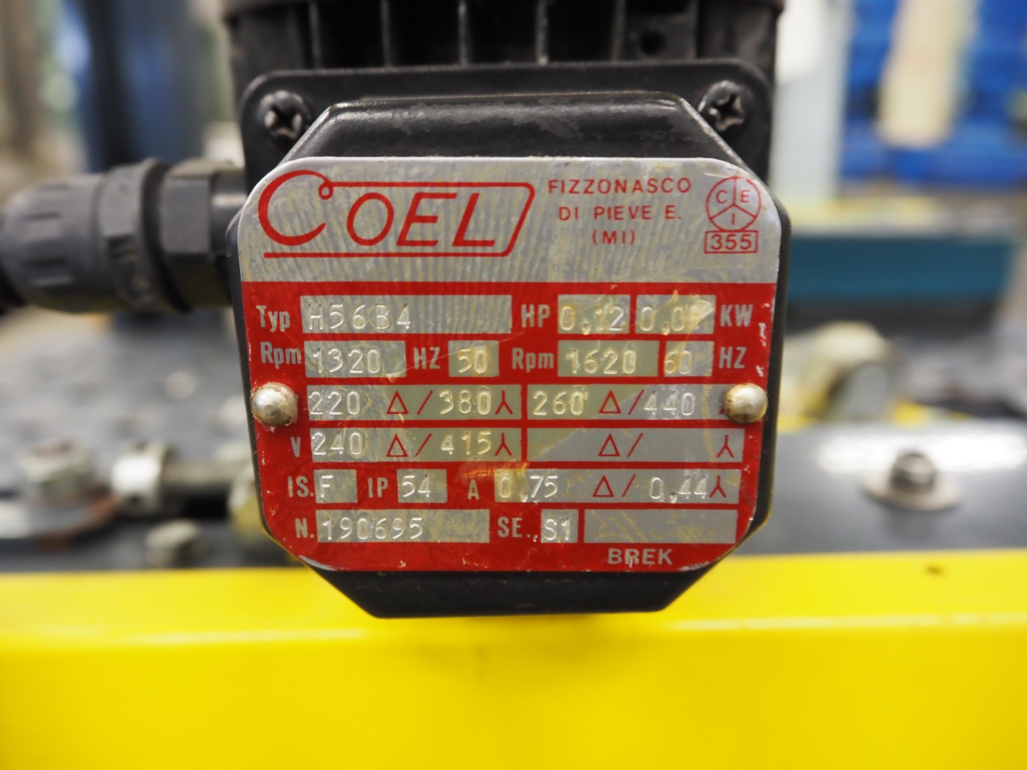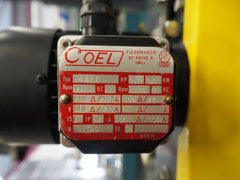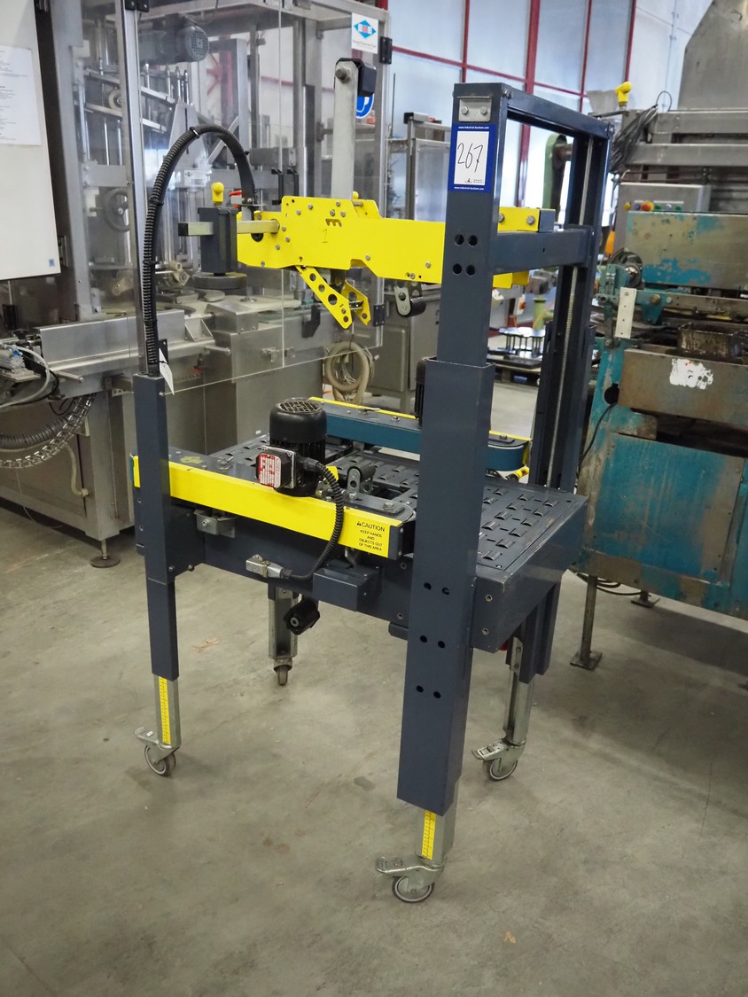 Siat S.p.a mobile box closing machine, model: SM8/4.P, type: A, serial number: 25771, year of construction: 1995, 380 V, 3 Ph, 50 Hz, 1 A, 180 W, maximum clearance: 490 mm x 400 mm, total dimensions: 920 mm x 850 mm x 1750 mm.
