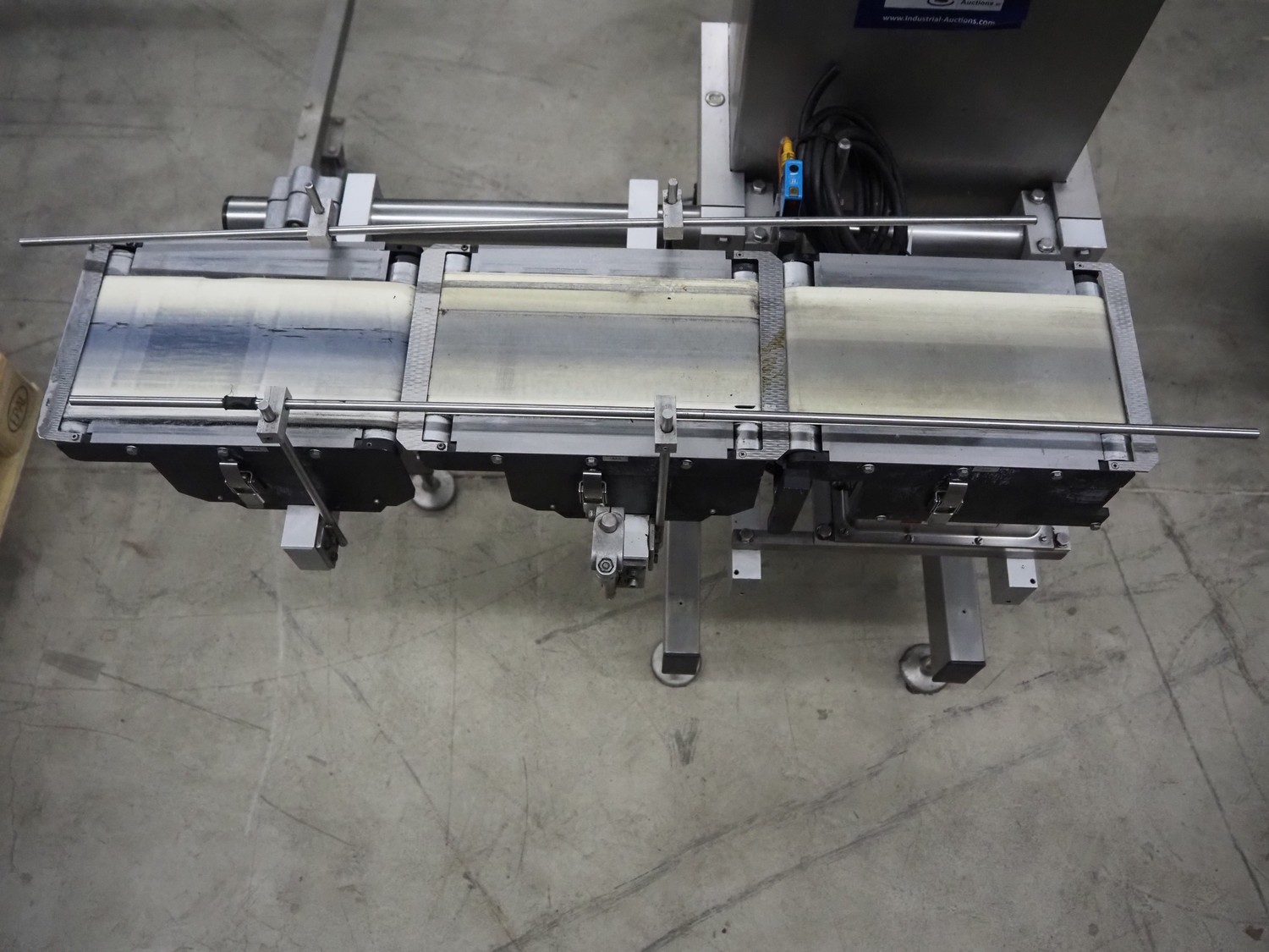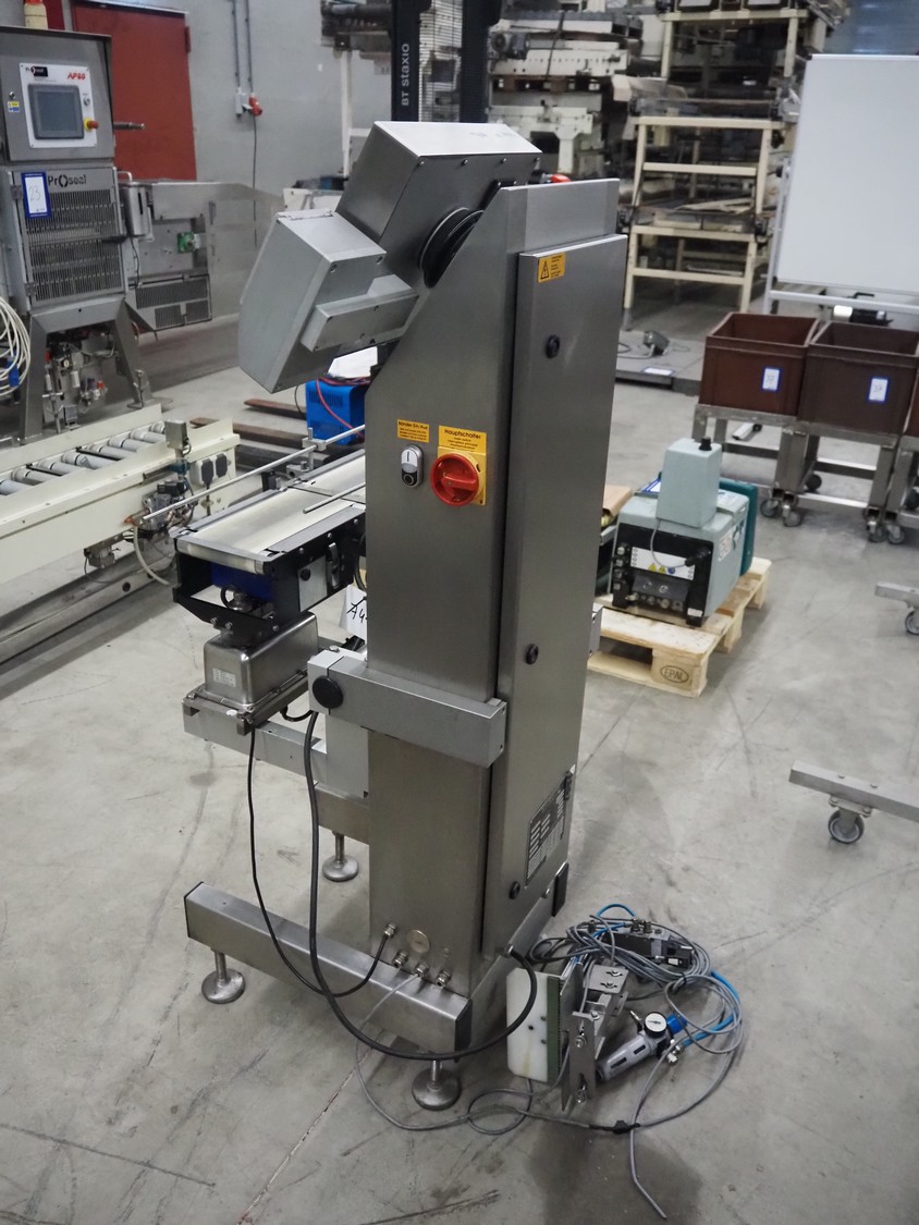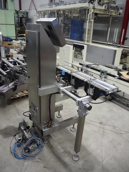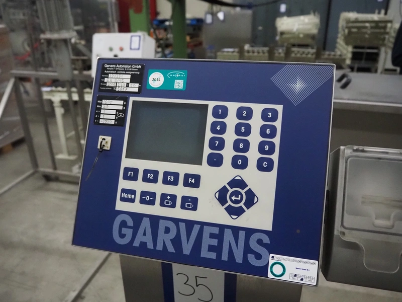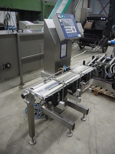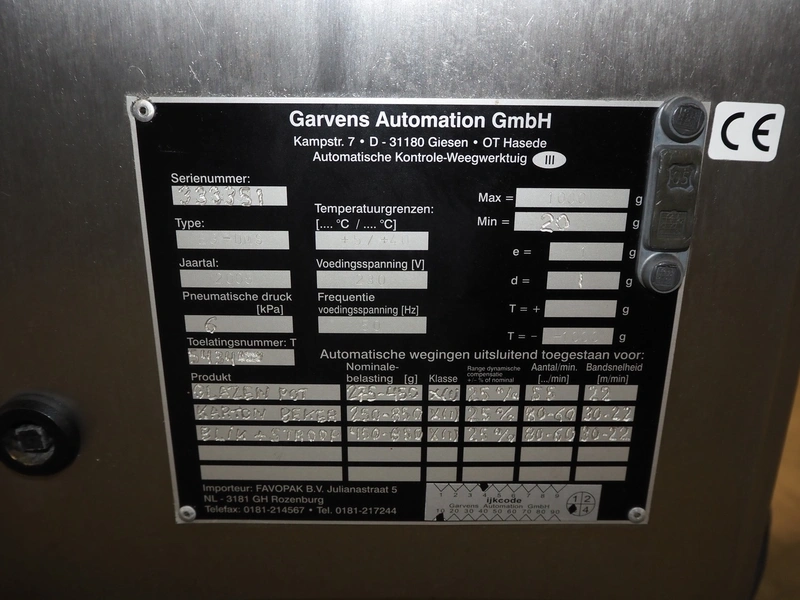 Garvens checkweigher, type: E3-DMS, serial number: 333351, year of construction: 2005, 230 V, 50 Hz, 6 kPa, maximum weight: 1000 gram, minimum weight: 20 gram, e= 1 gram, d= 1 gram, T=-1000 gram, plastic belt, belt width: 130 mm, total dimensions: 1020 mm x 700 mm x 1500 mm.