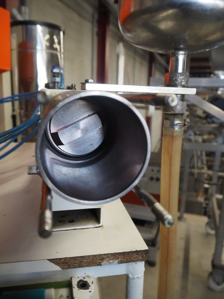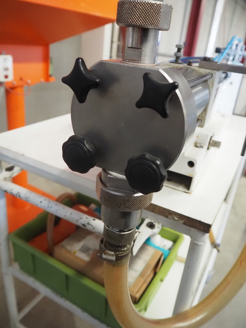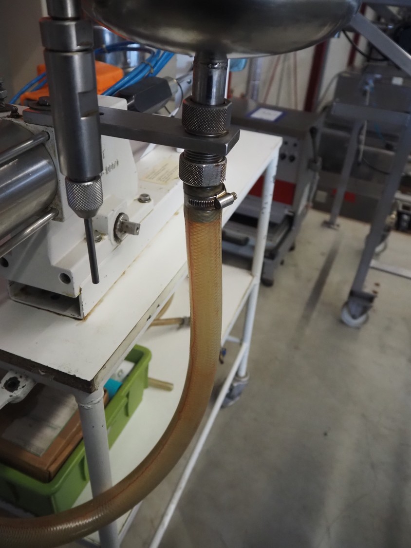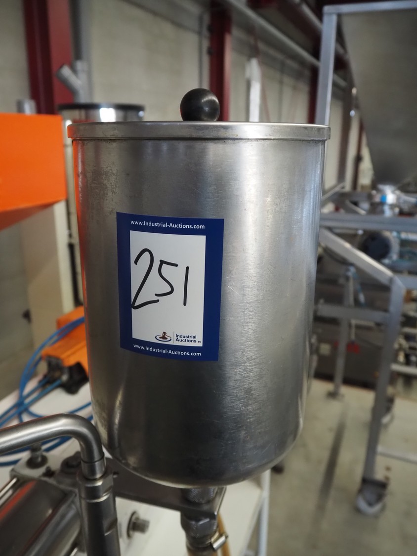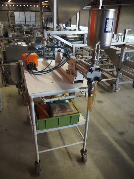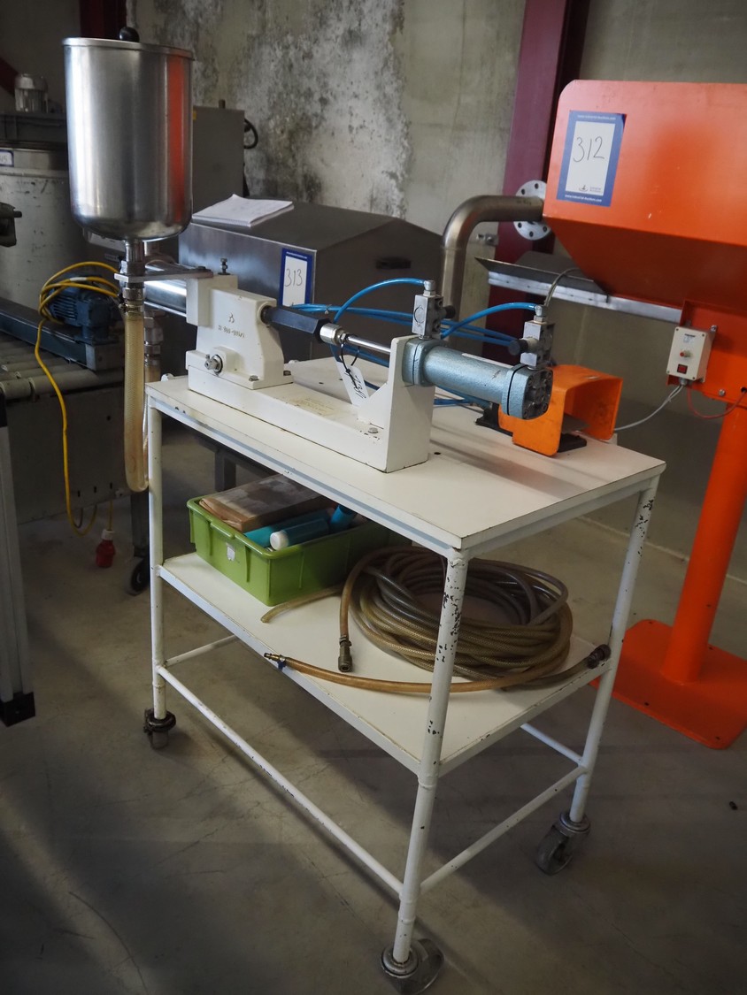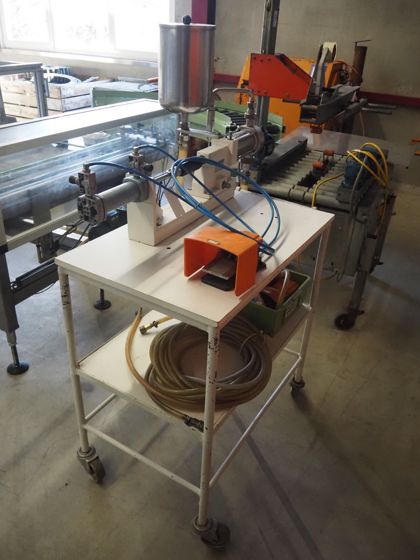 Würschum GmbH mobile depositor for 500 ml cream or liquid, type: H 500 , machine number: 92 01-4 28 8, tube dimensions: Ø 200 mm x 300 mm, output dimensions: 4 mm, foot control, total dimensions: 1100 mm x 700 mm x 1560 mm. Including crate with parts