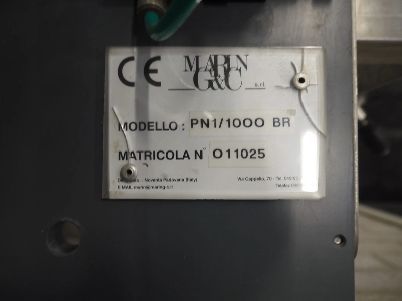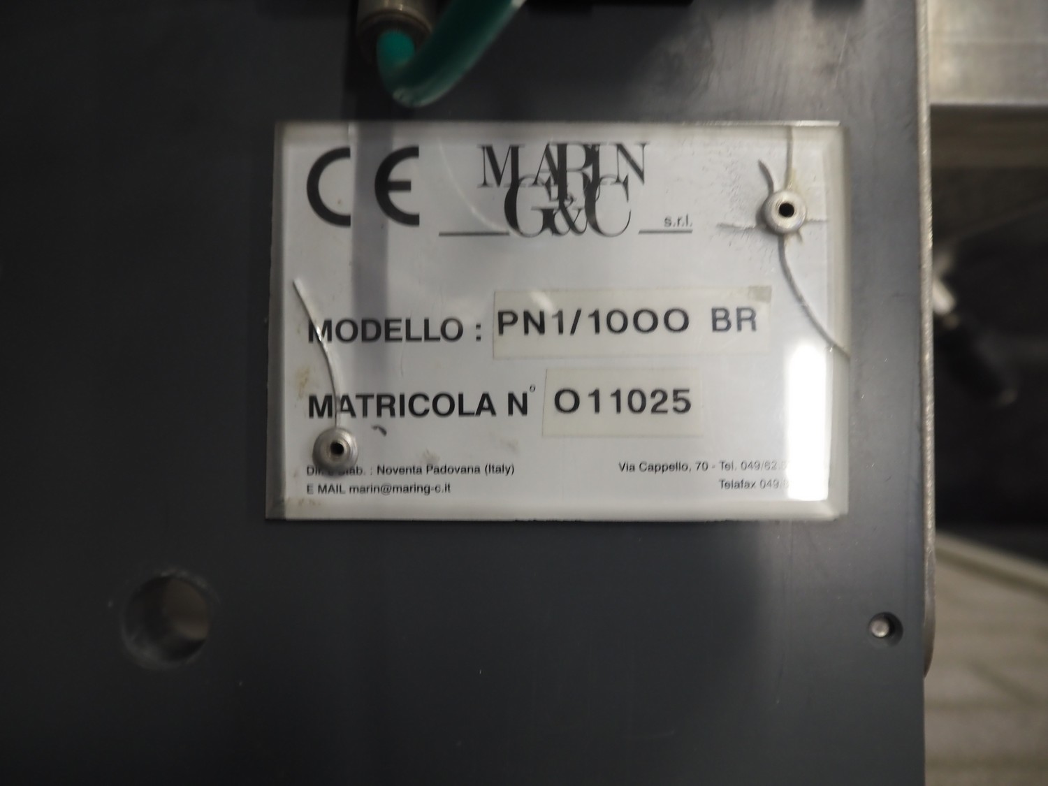 Marin G&C s.r.l. liquid filling machine, model: PN1/1000 BR, serial number: 011025, dimensions: 750 mm x 500 mm x 1800 mm.