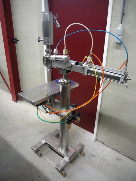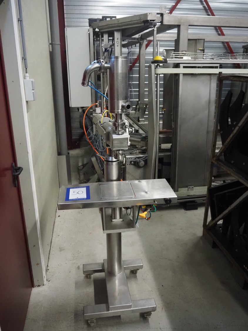 Mobile s/s depositor, s/s frame, diameter pipe: 65 mm, total dimensions: 700 mm x 1000 mm x 1750 mm.