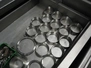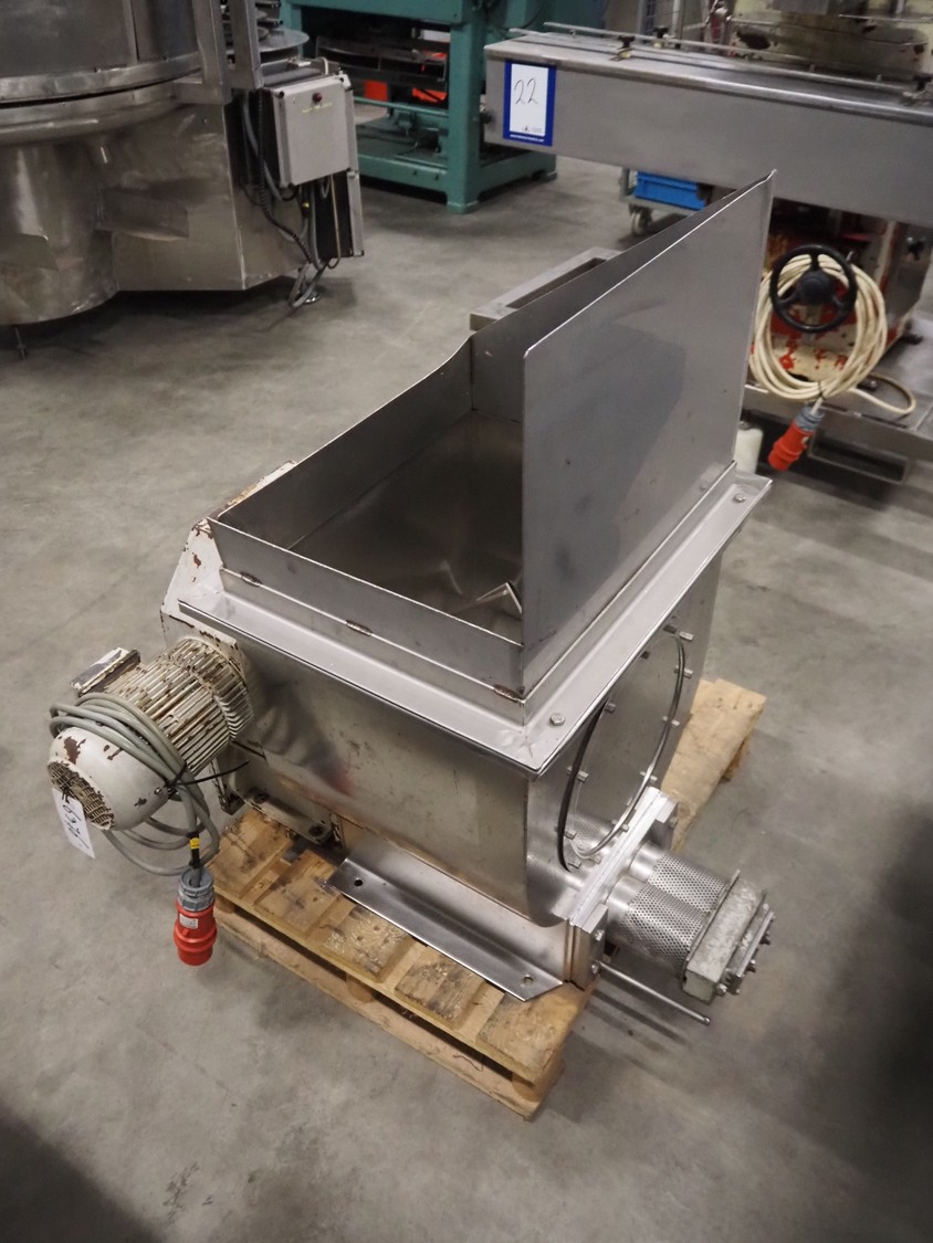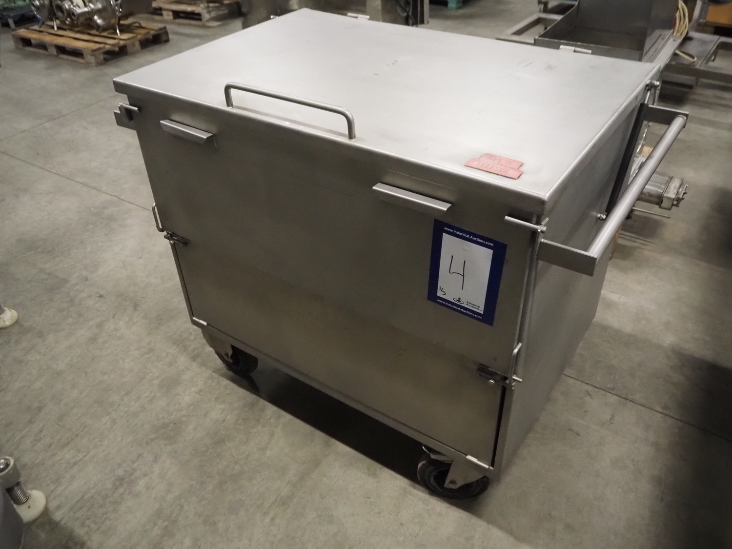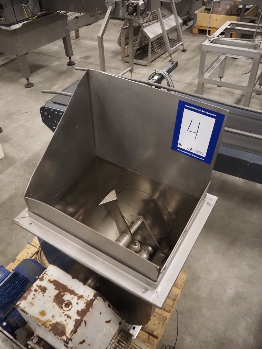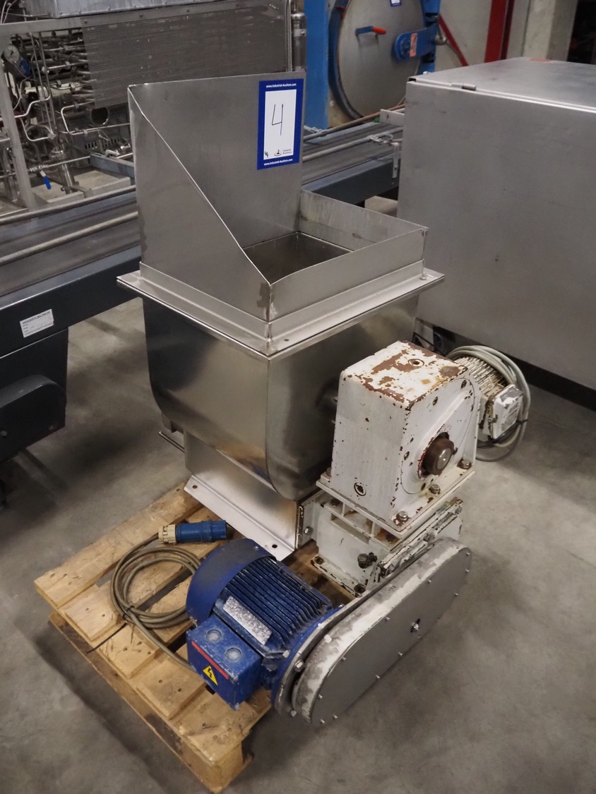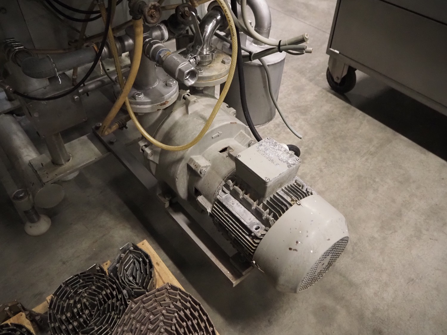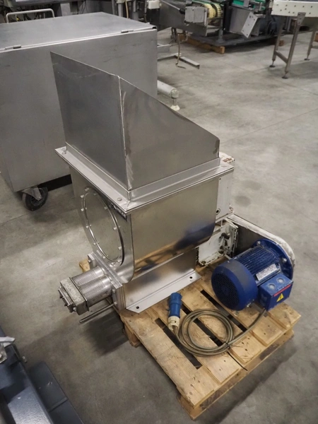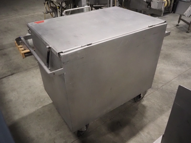 Hema Technologies volumetric inline can filler, machine: GPF.3, serial number: 114, year of construction: 1992, 6 filling heads, plastic belt width: 80 mm, diameter cans: 73 mm, total dimensions machine: 2600 mm x 2400 mm x 2200 mm, including J. Legendre outfeed belt used for cans, s/s frame, s/s belt, belt width: 80 mm, total dimensions outfeed belt: 6600 mm x 350 mm x 1750 mm, s/s trolley with spare parts, dimensions trolley: 1270 mm x 770 mm x 1100 mm.