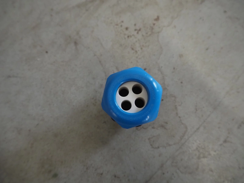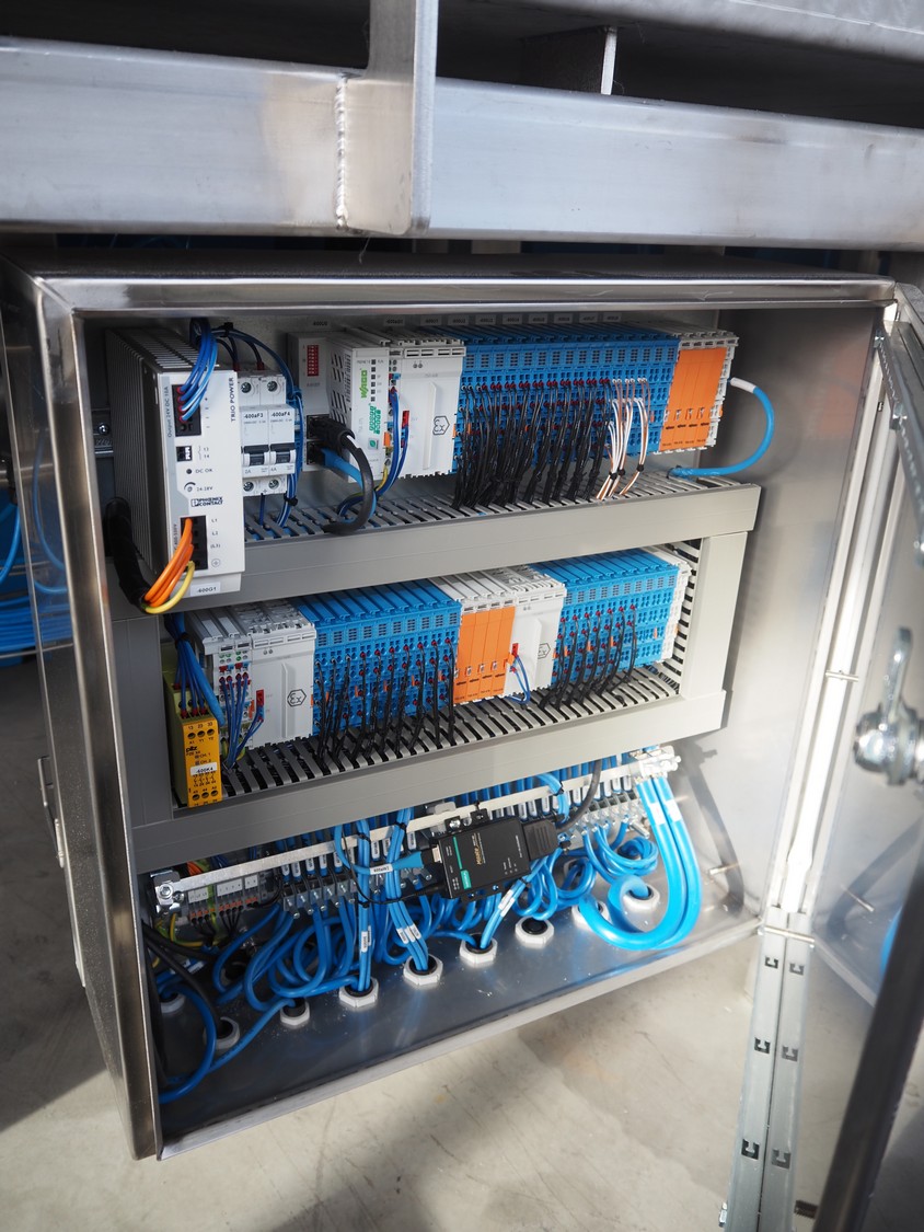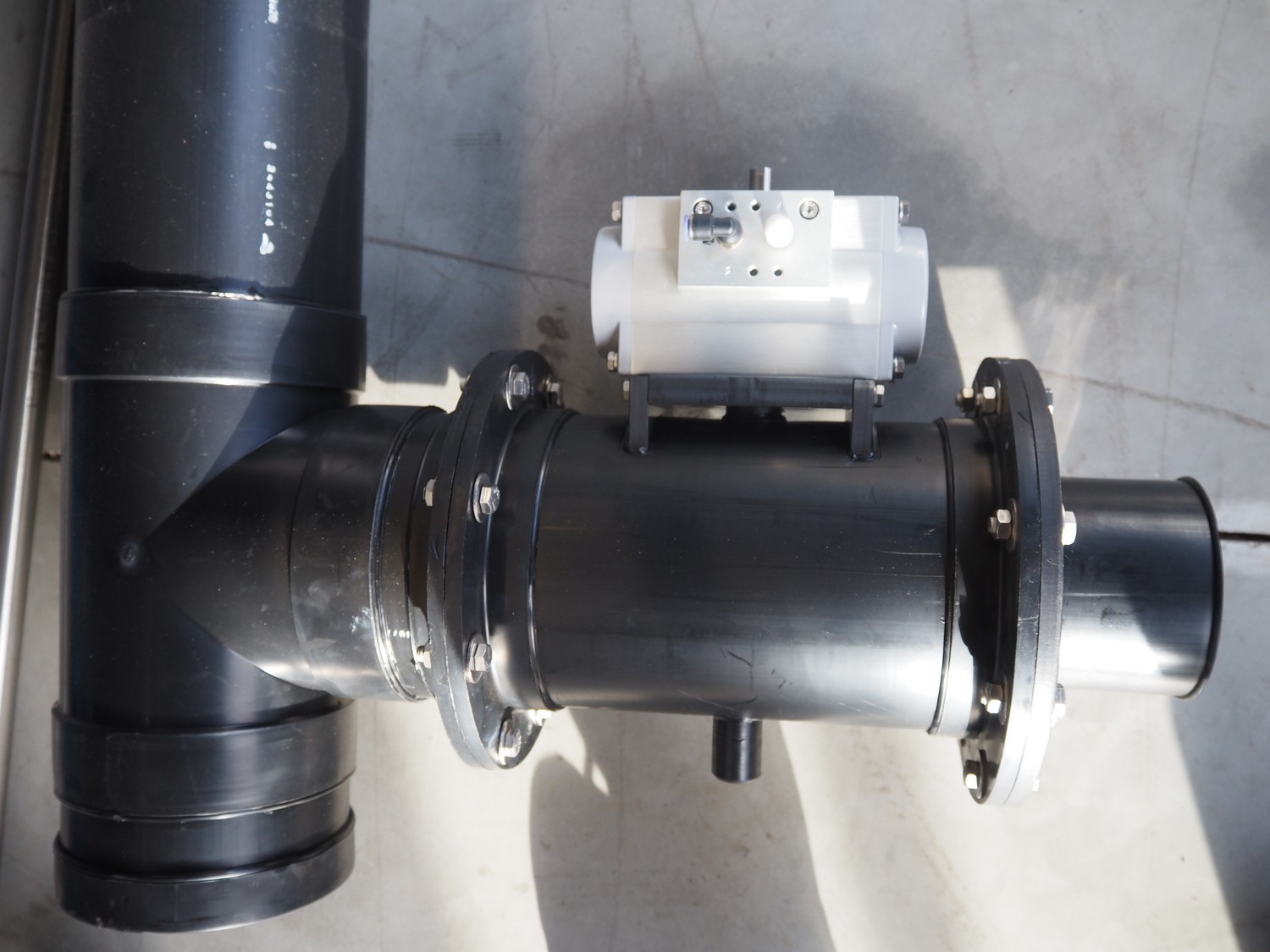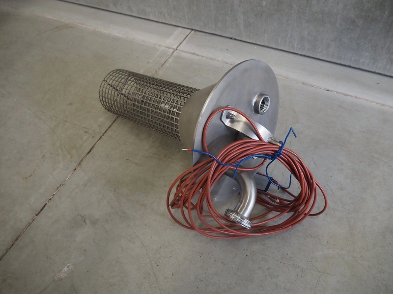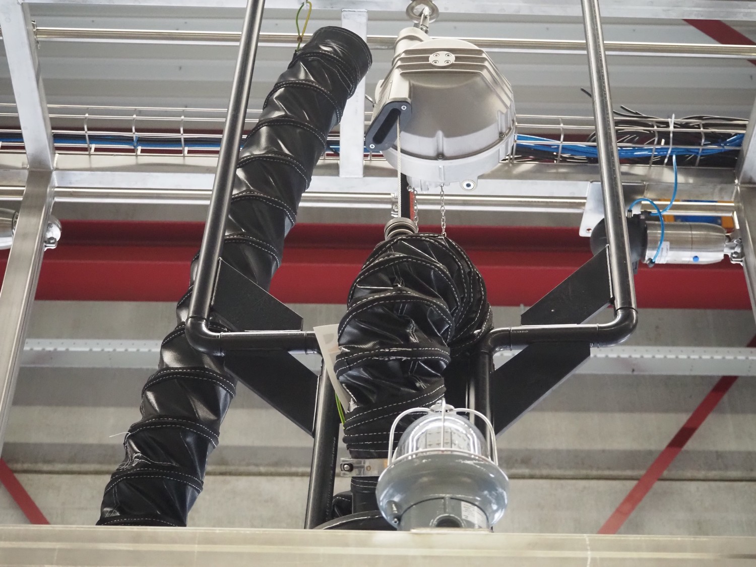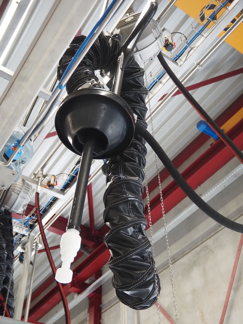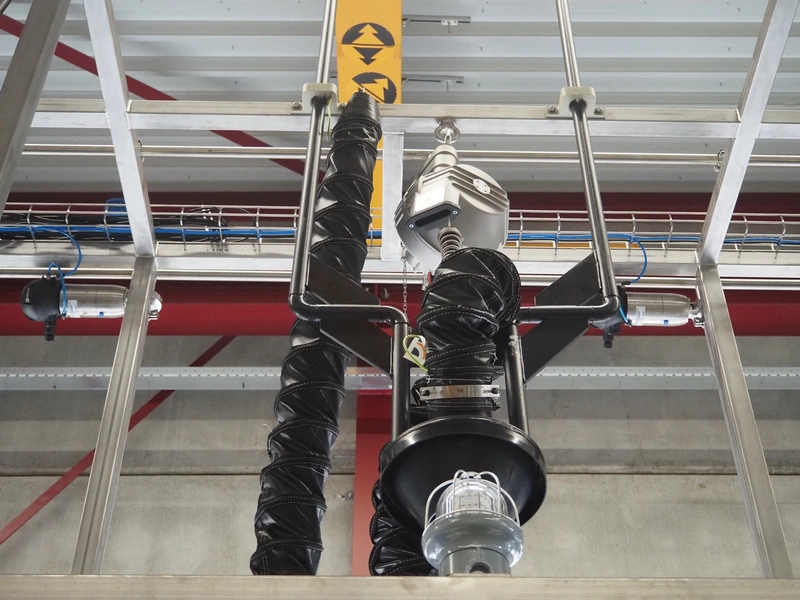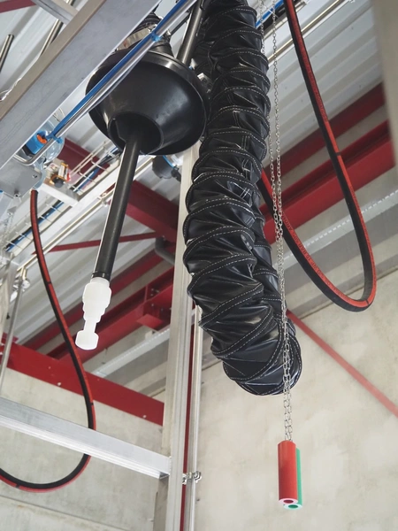 Gröninger IBC discharging and cleaning line consisting of: 5 IBC discharging and cleaning stations on Denios drip trays, 5 cleaning heads for spray cleaning and residue gas extraction on Tecna balancer, 2 CSF pumps, type: A 41-4-1.5/BD.PZ0T8B, dimensions drip trays: 1400 mm x 1350 mm x 1900 mm, dimensions s/s cleaning frame: 7550 mm x 1800 mm x 4300 mm, dimensions platform: 7500 mm x 2100 mm x 2800 mm. Without blower for gas extraction.