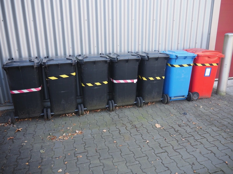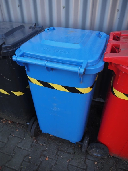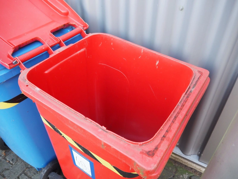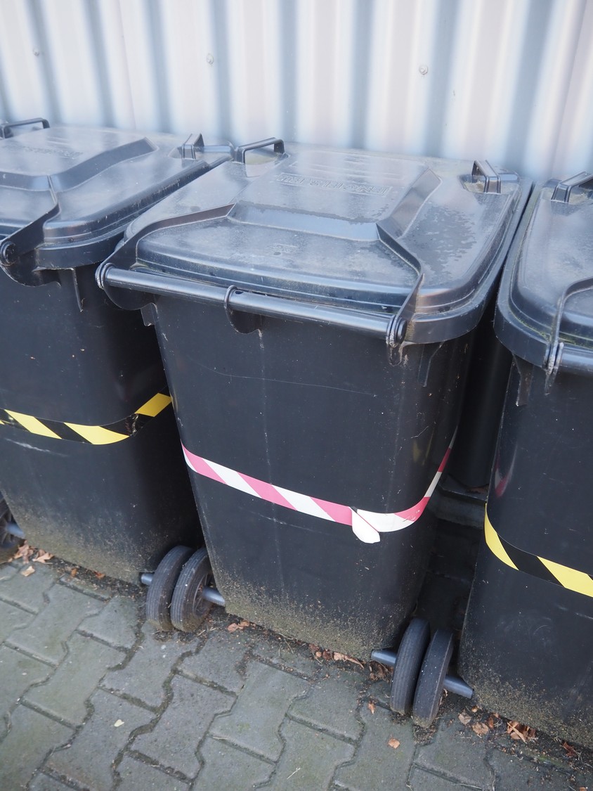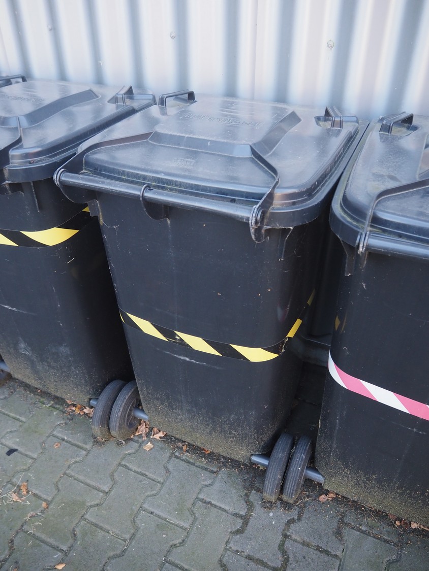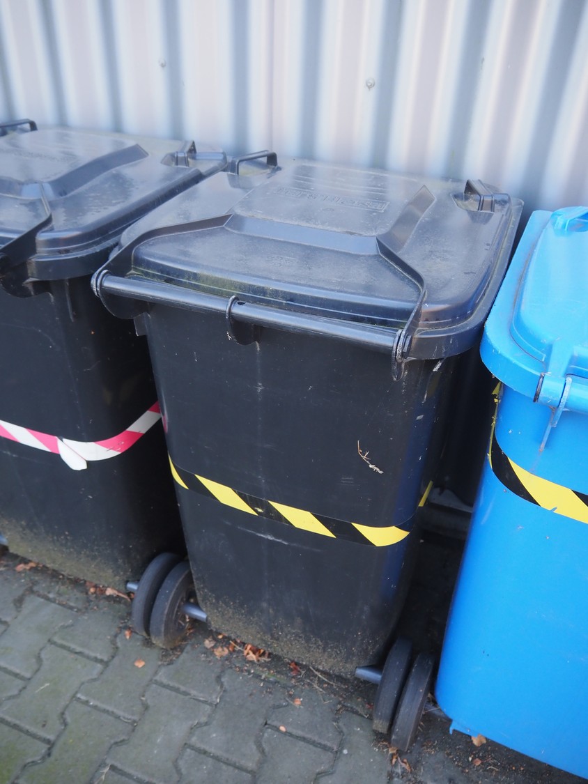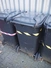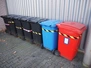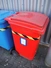 7 Engels plastic waste containers, volume: 200 liter, dimensions: (7x) 720 mm x 760 mm x 950 mm.