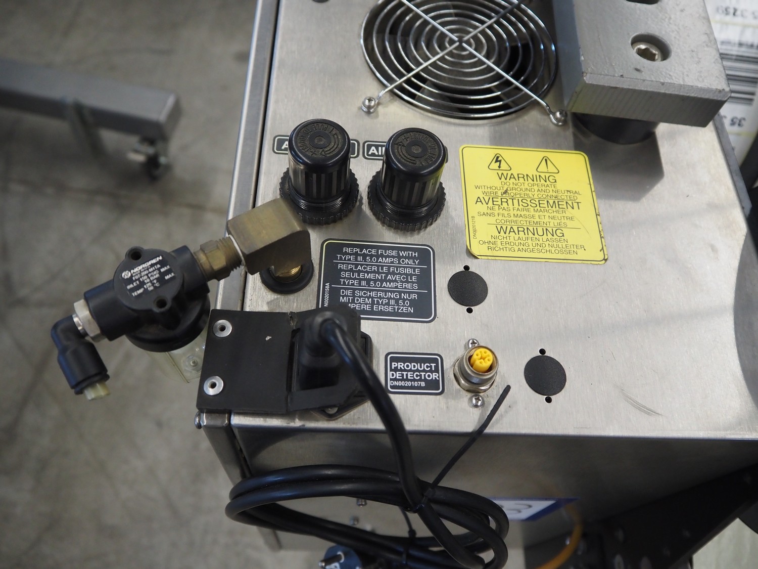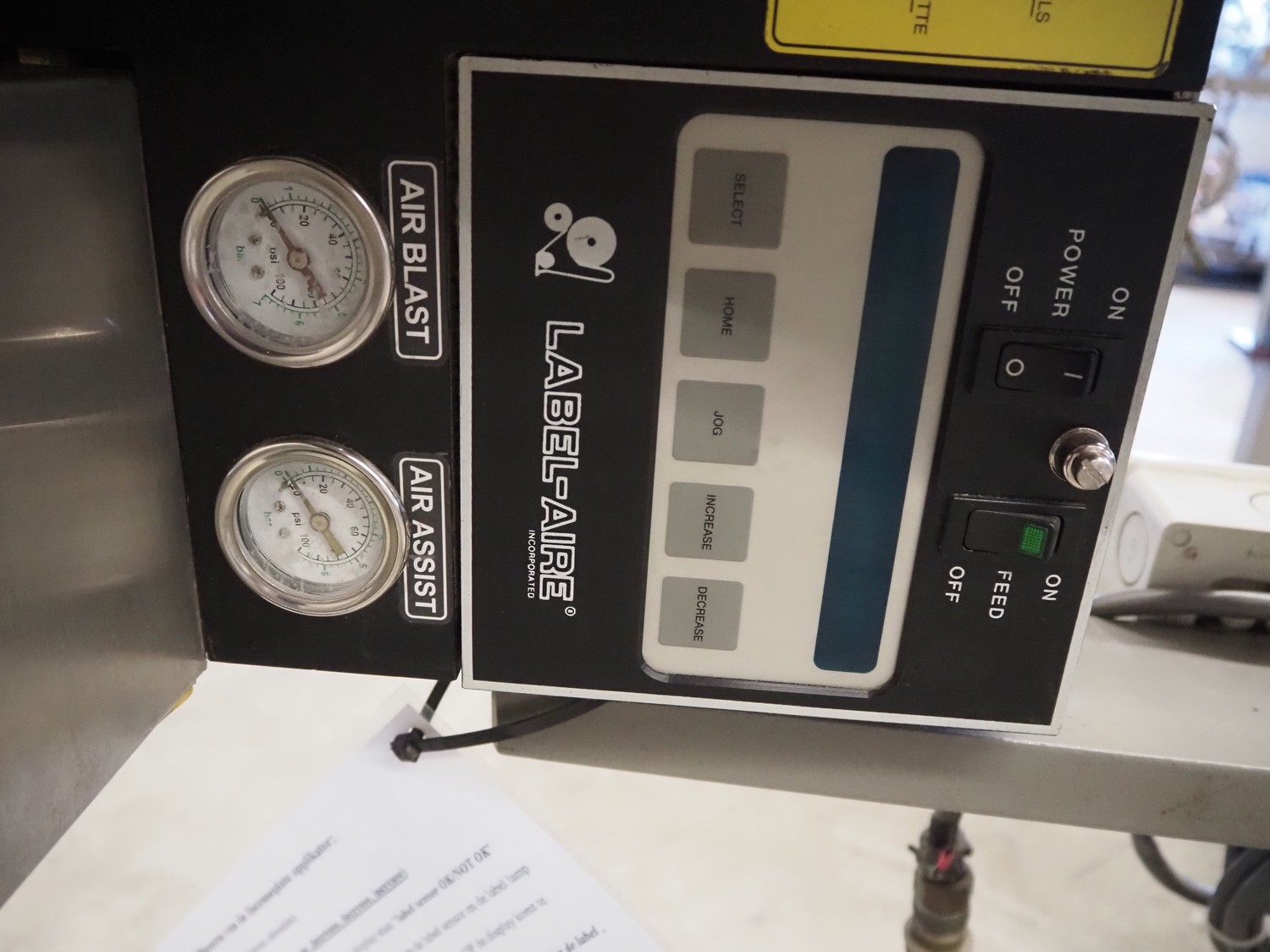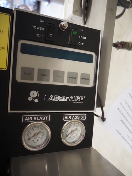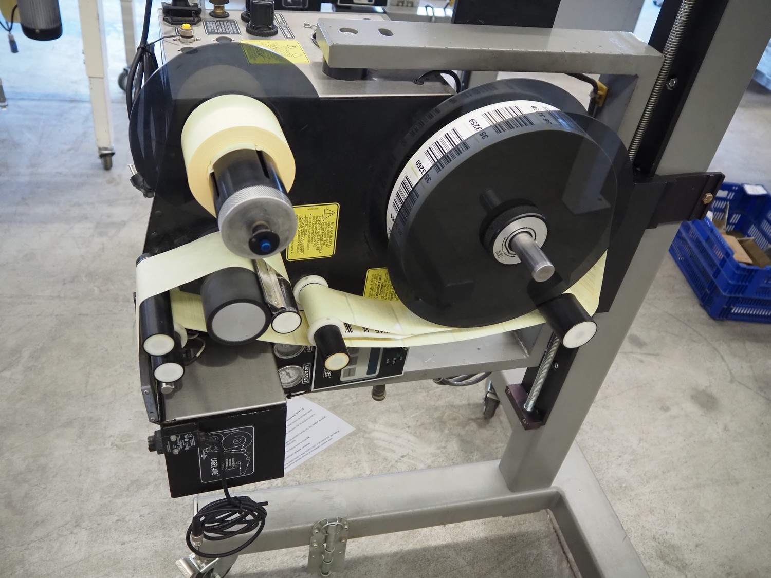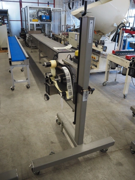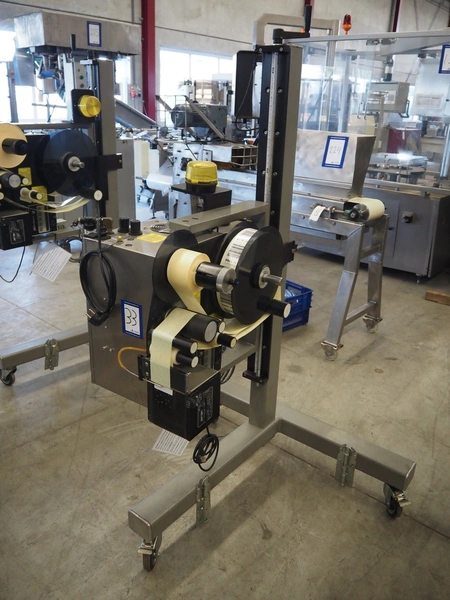 Label Aire mobile labelling machine, height adjustable, label width: 60 mm, total dimensions: 1200 mm x 1000 mm x 1700 mm.