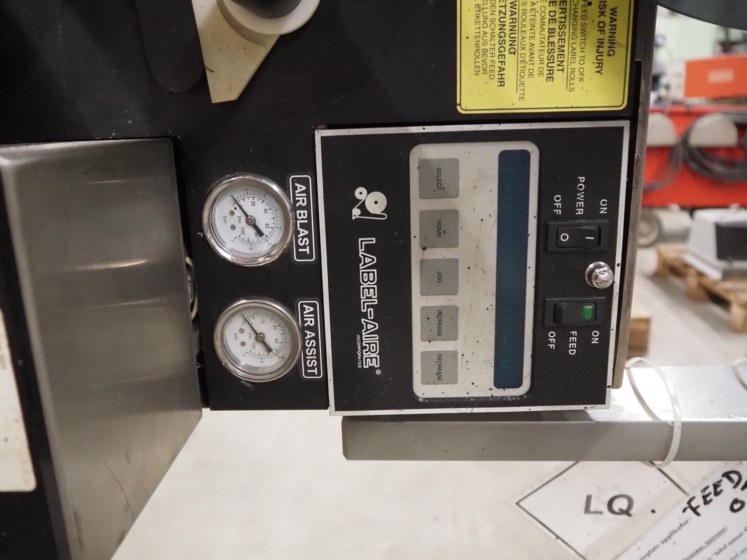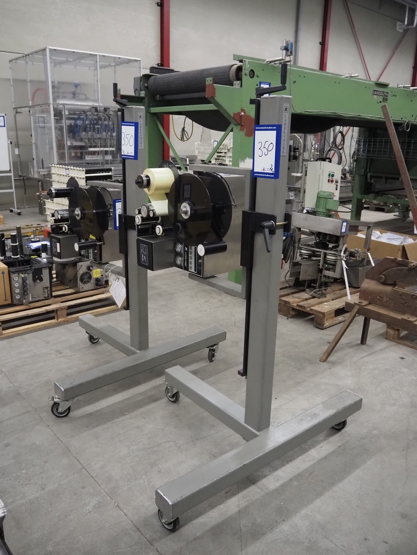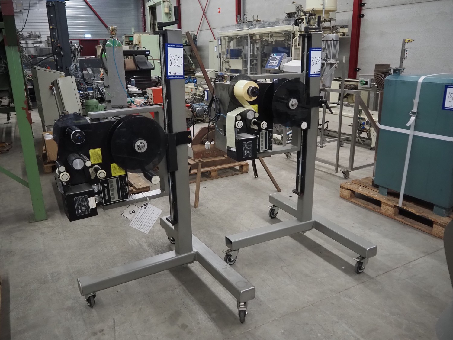 2 Label Aire mobile labelling machines, height adjustable, label width: 60 mm, total dimensions: (2x) 1200 mm x 1000 mm x 1700 mm. Including pallet with labellers.