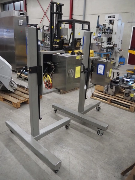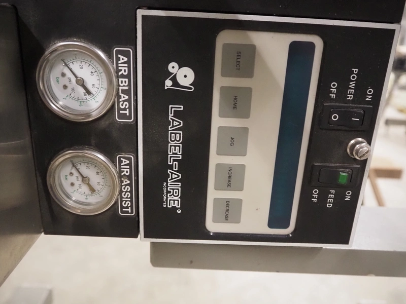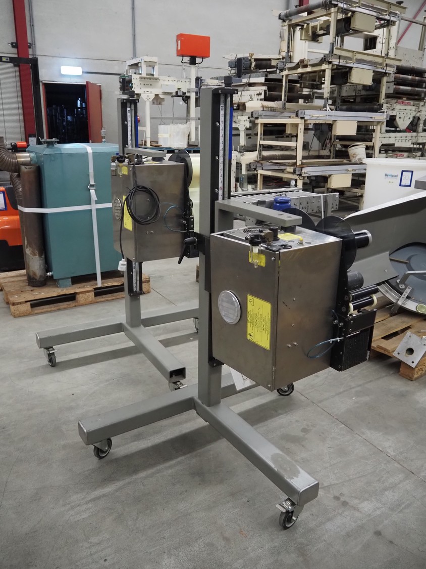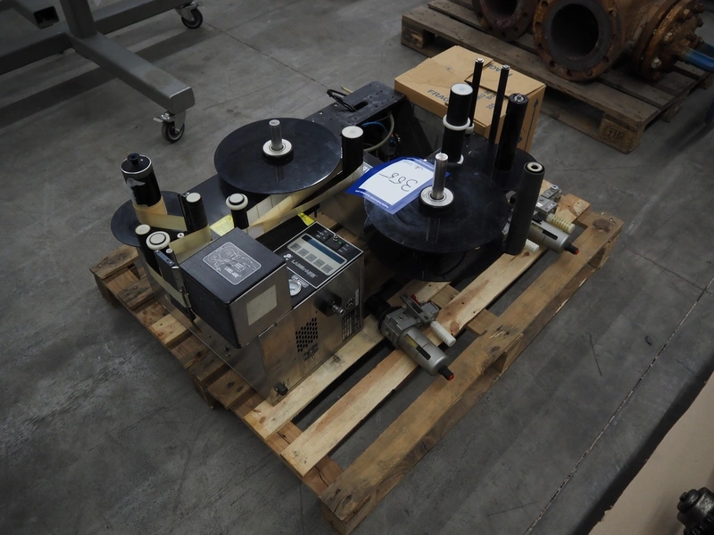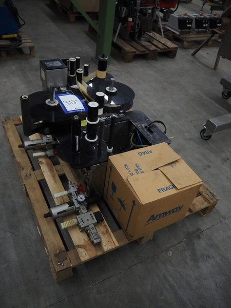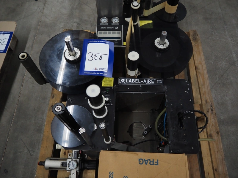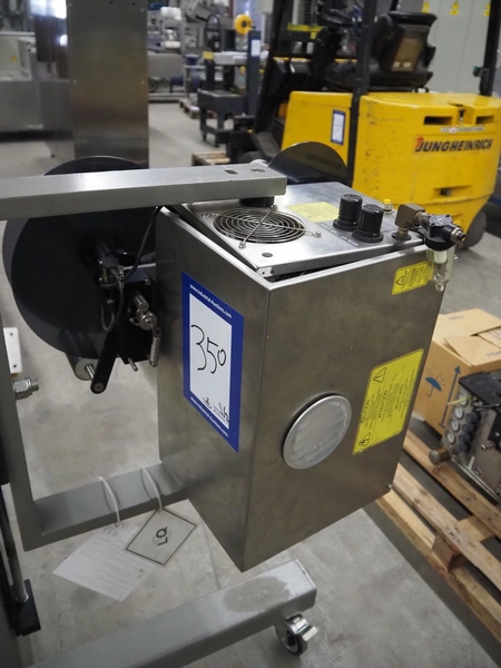2 Label Aire mobile labelling machines, height adjustable, label width: 60 mm, total dimensions: (2x) 1200 mm x 1000 mm x 1700 mm. Including pallet with labellers.