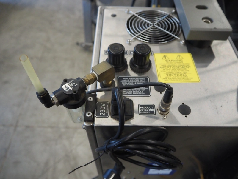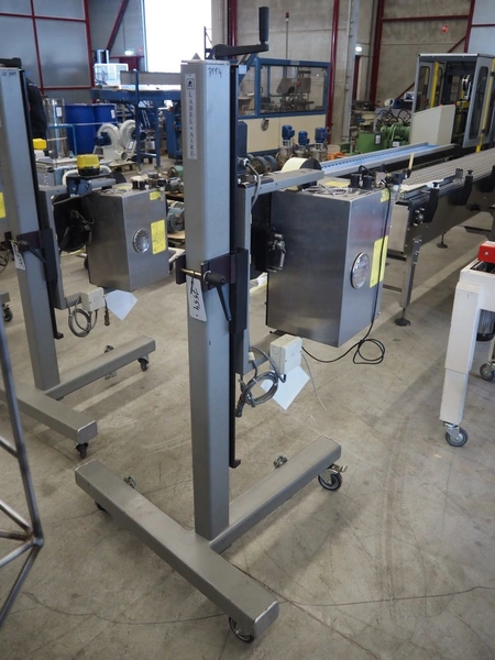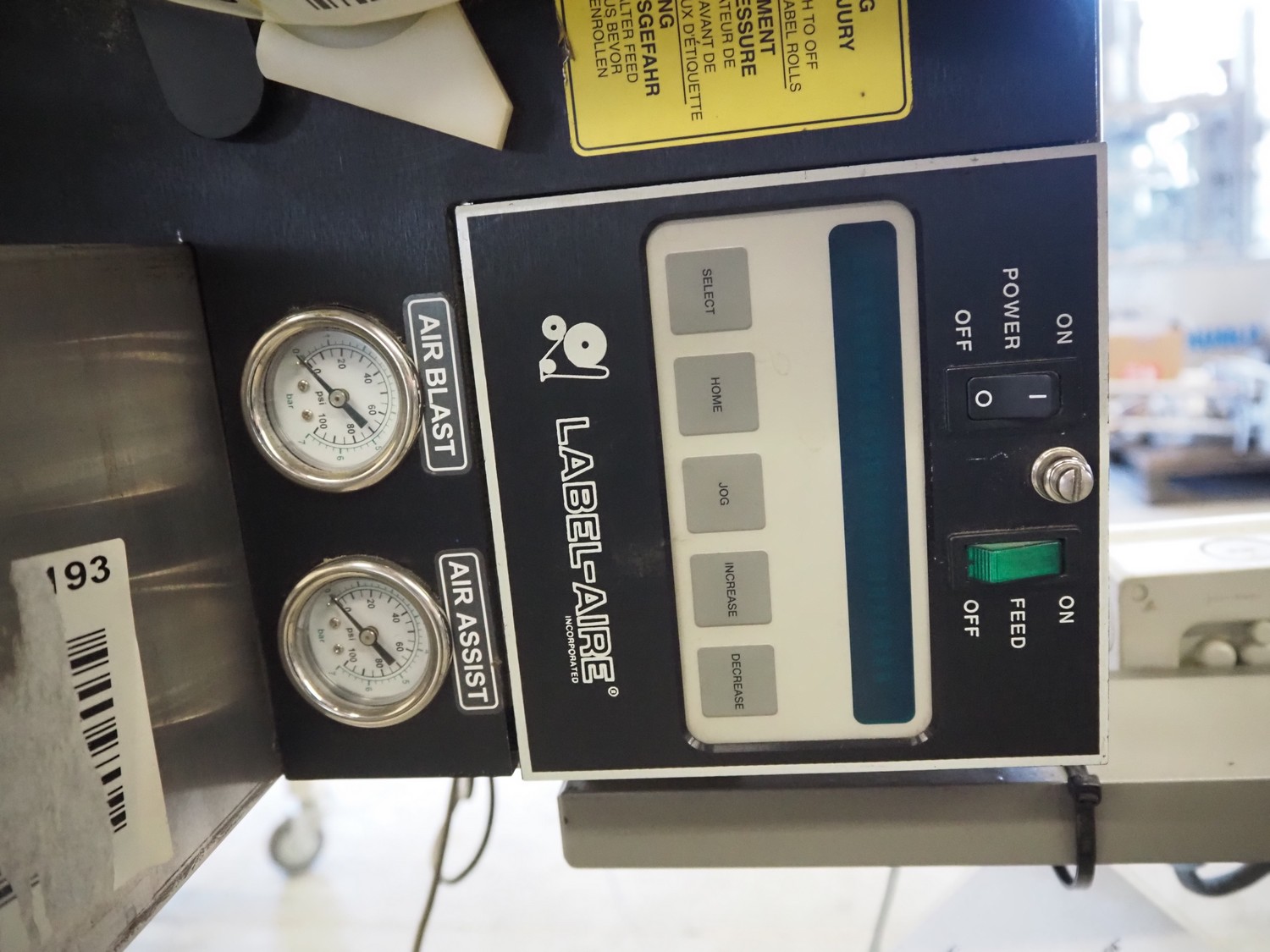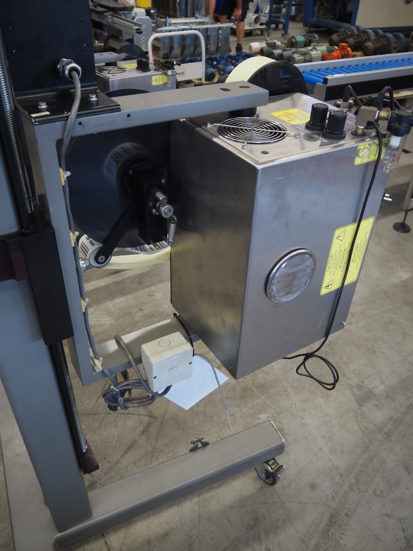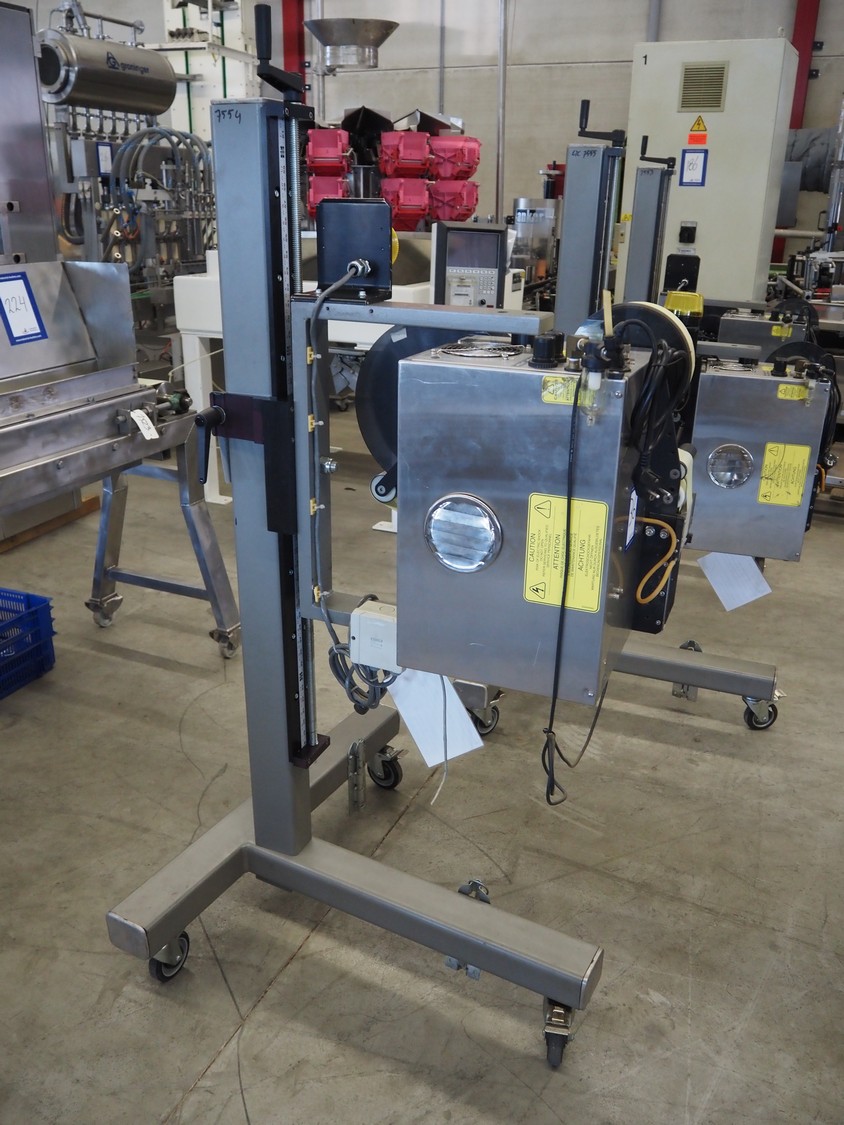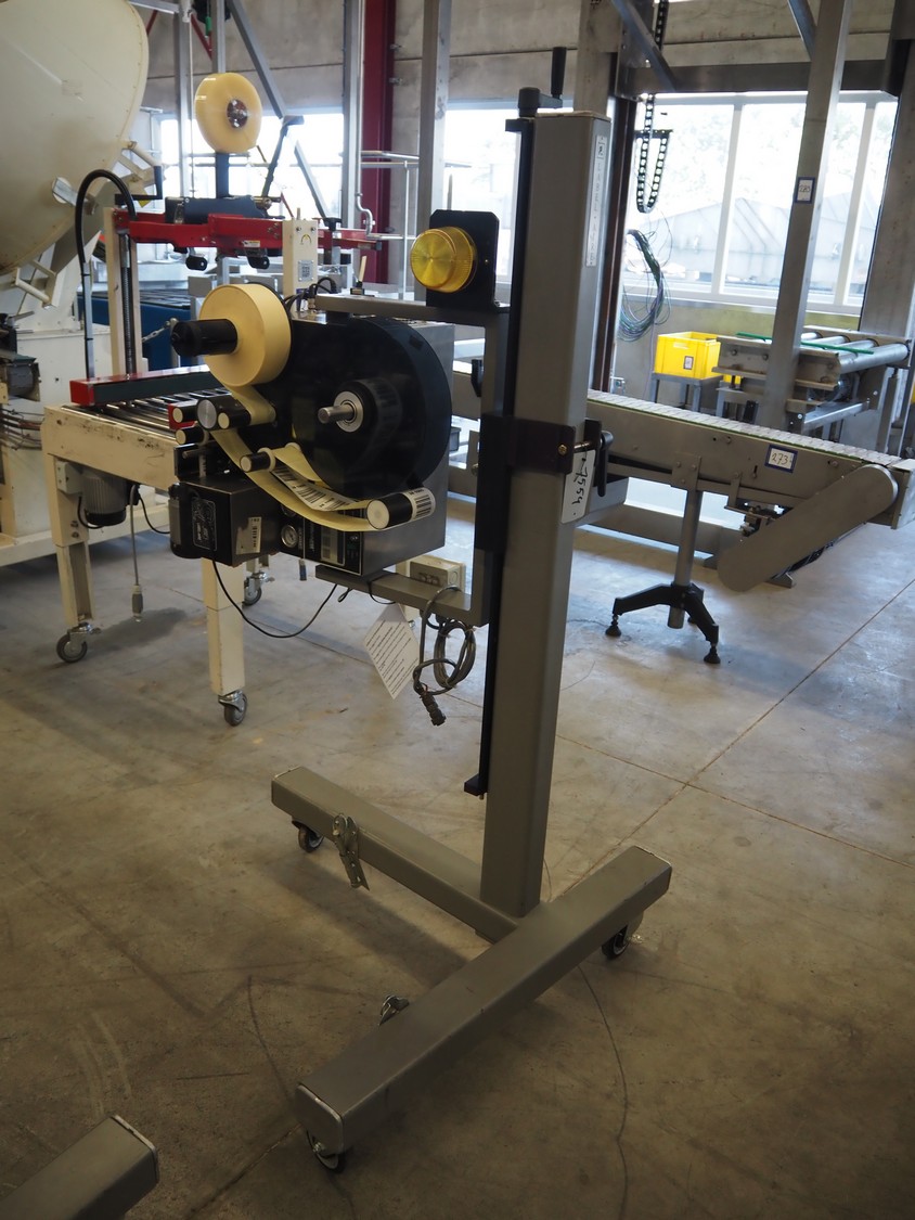 Label Aire mobile labelling machine, height adjustable, label width: 60 mm, total dimensions: 1200 mm x 1000 mm x 1700 mm.