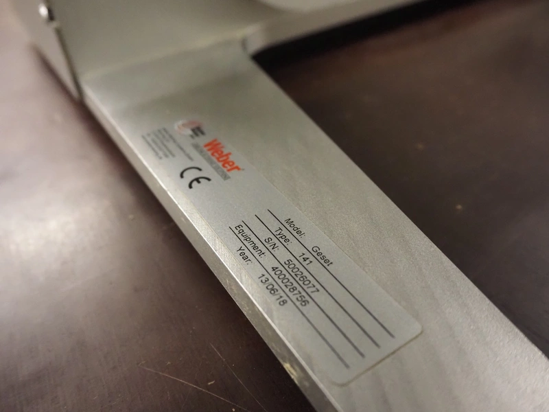 Weber labelling unit, model: Geset, type: 141, serial number: 50026077, year of construction: 13/06/18, dimensions: 900 mm x 430 mm x 440 mm.