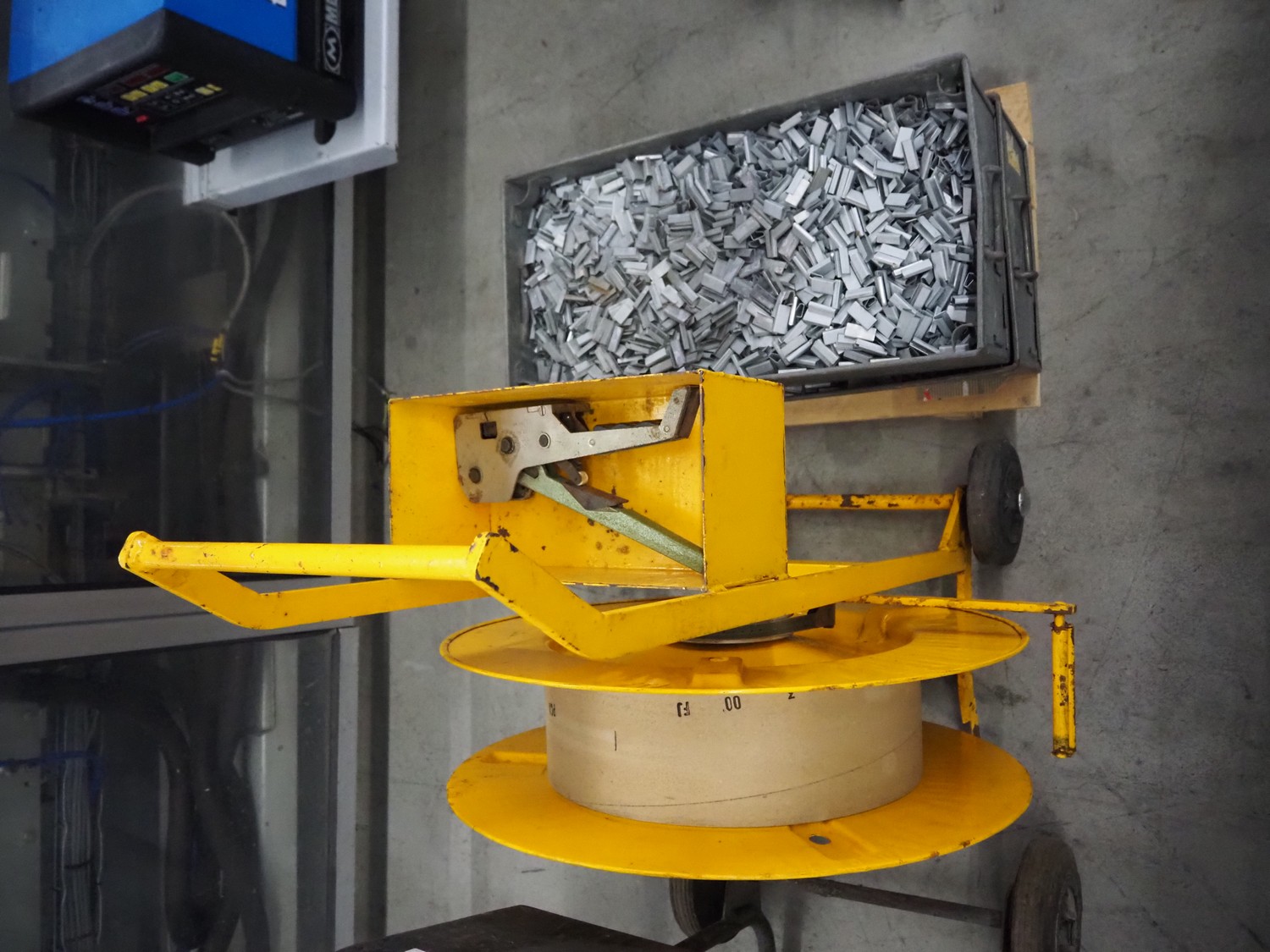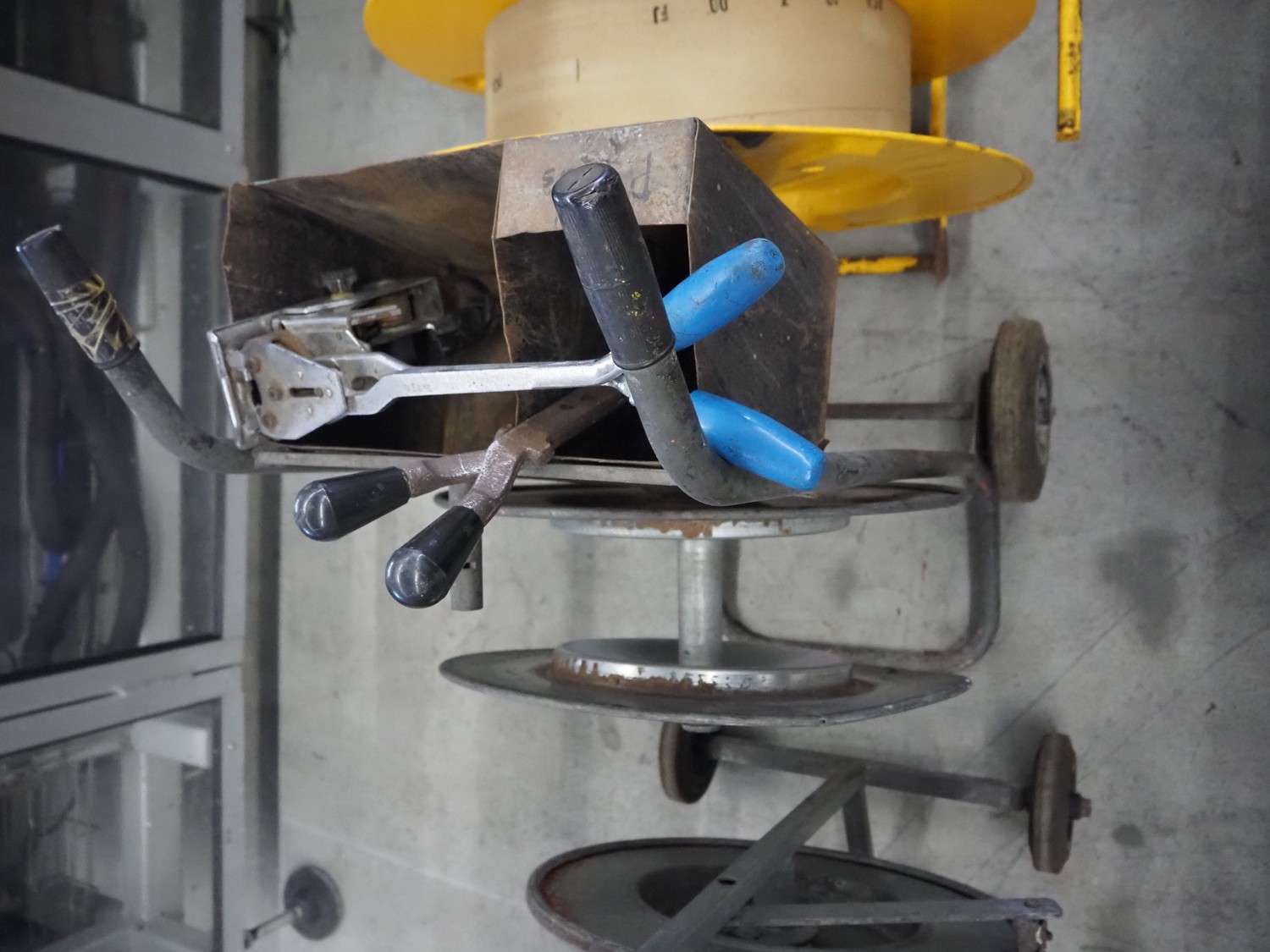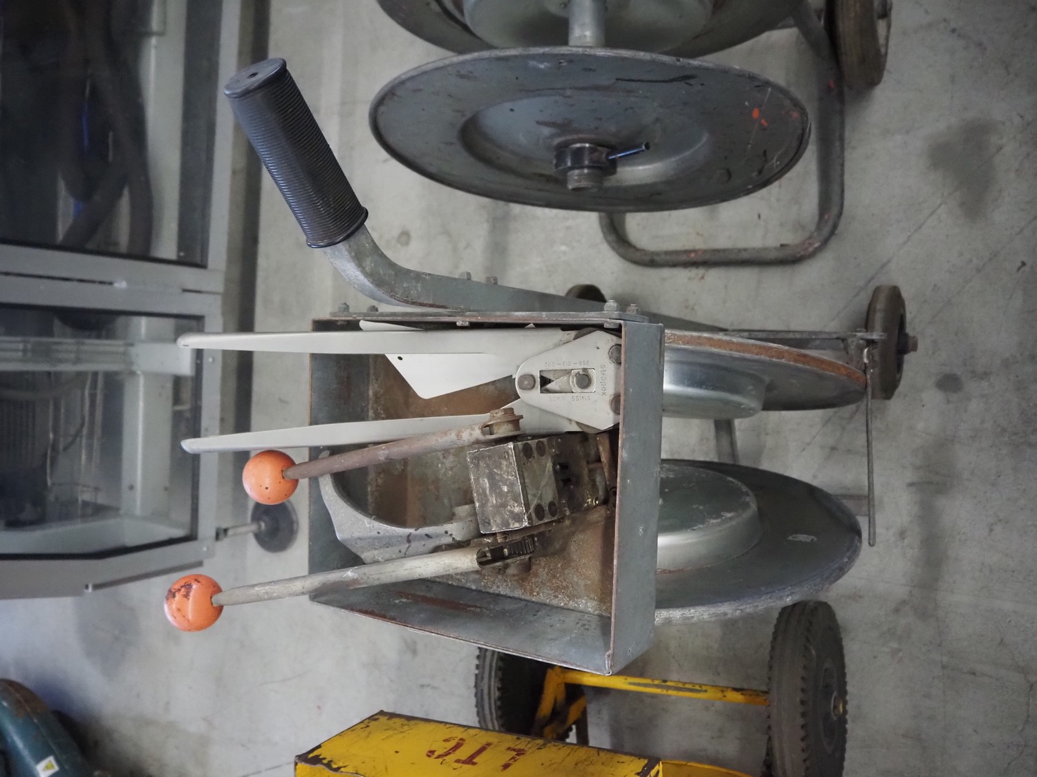 5 Signode steel strapping trolleys, dimensions: (3x) 500 mm x 530 mm x 1000 mm, including 2 steel boxes with clips.