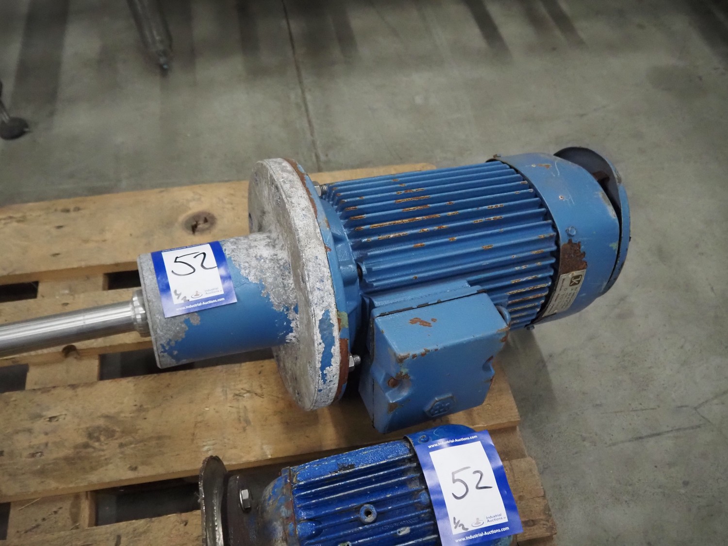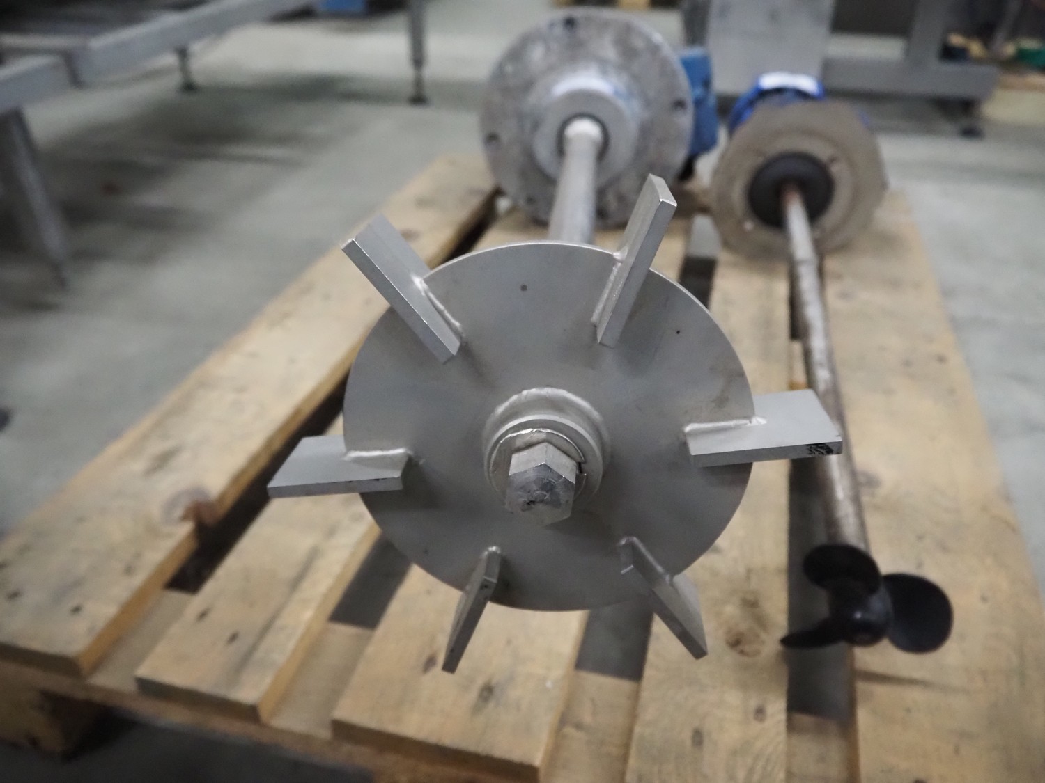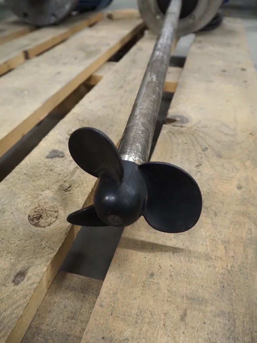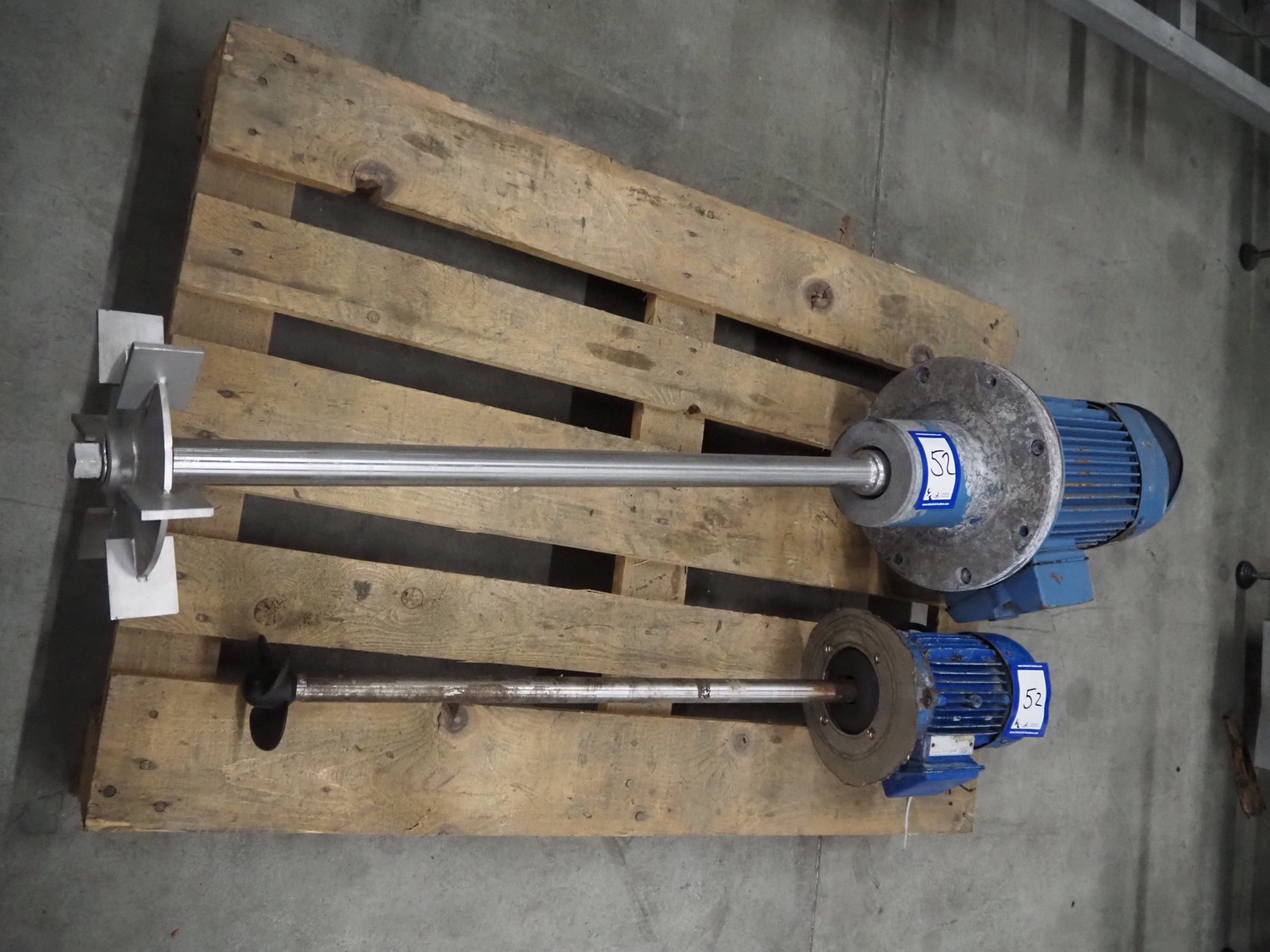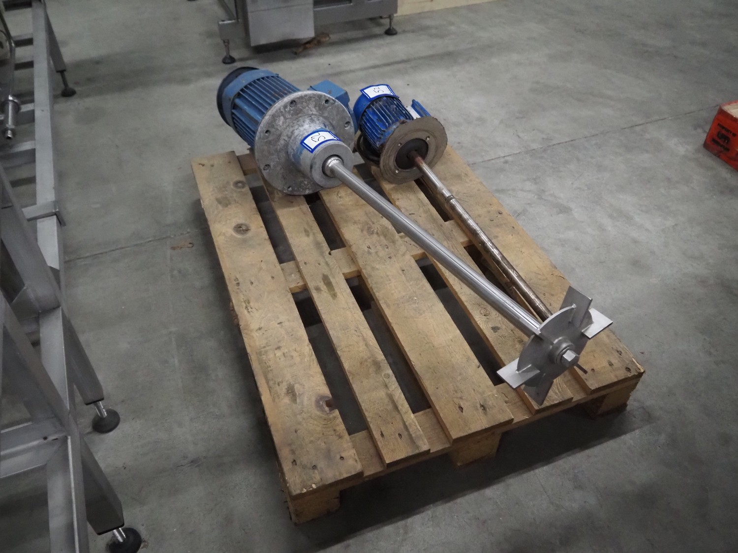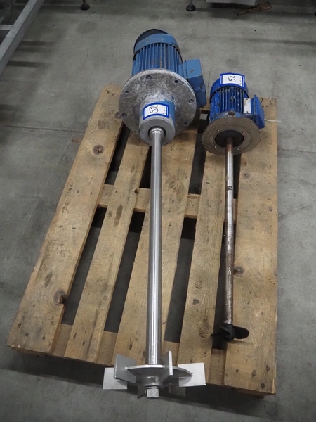 Pallet with 2 IKA-Machinenbau agitators, dimensions: (1x) Ø 300 mm x 1500 mm, (1x) 230 mm x 1020 mm.