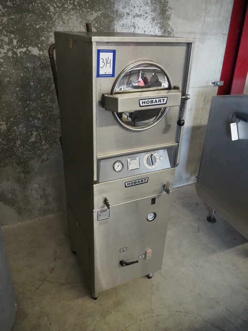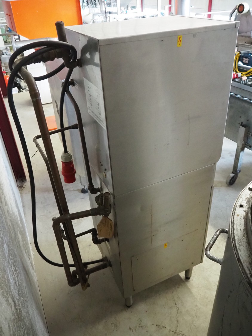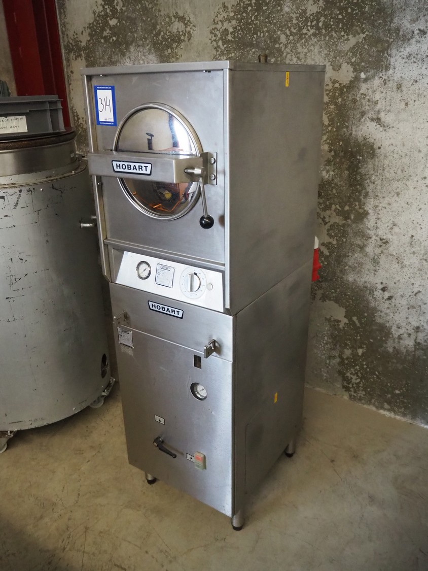 Hobart high speed cooker, model: 21, serial number: 86 033561, 380 V, 3 Ph, 50 Hz, 25 A, 16.5 kW, diameter infeed: 270 mm, inside dimensions: 370 mm x 280 mm x 280 mm, total dimensions: 850 mm x 460 mm x 1500 mm.