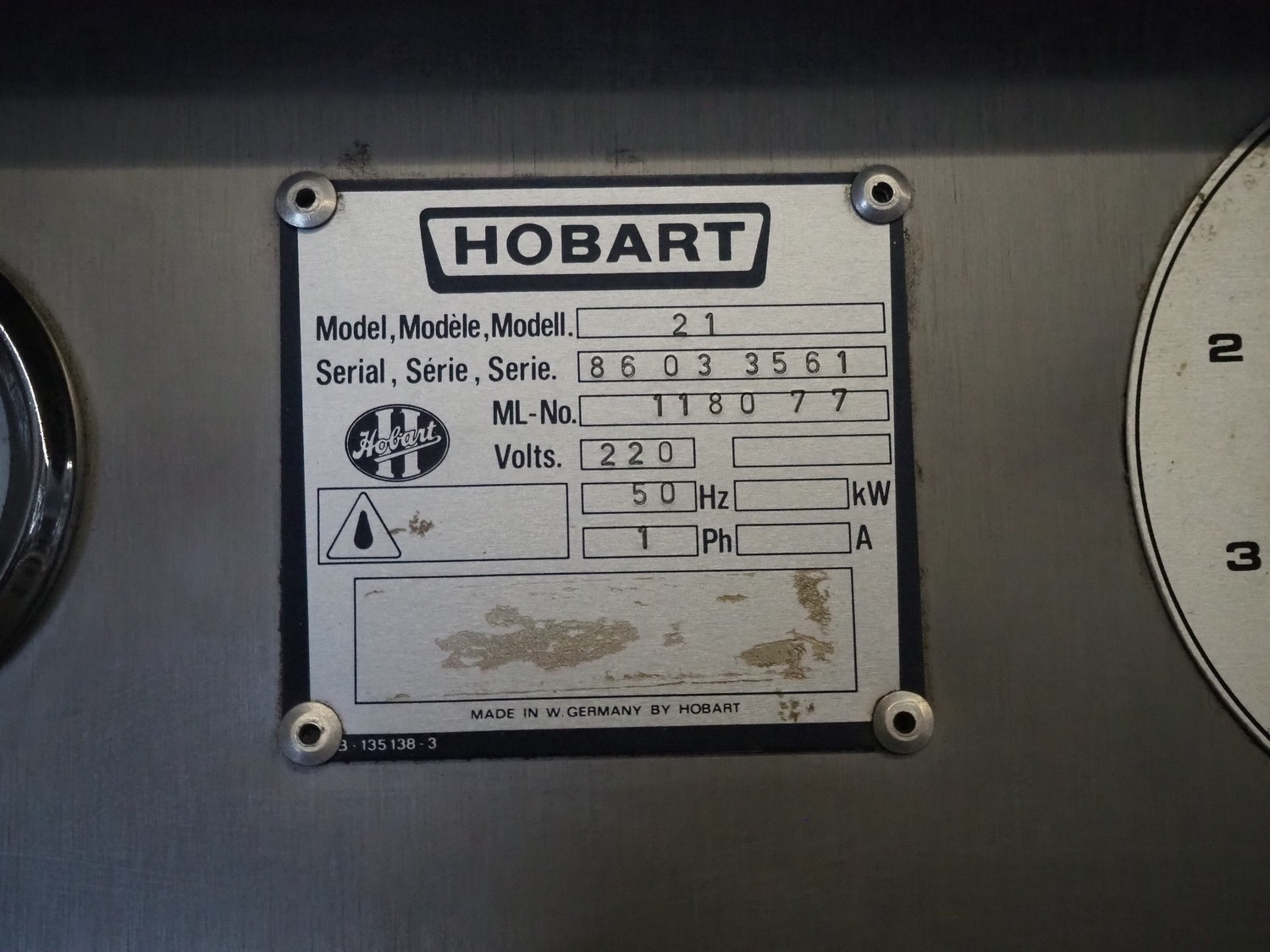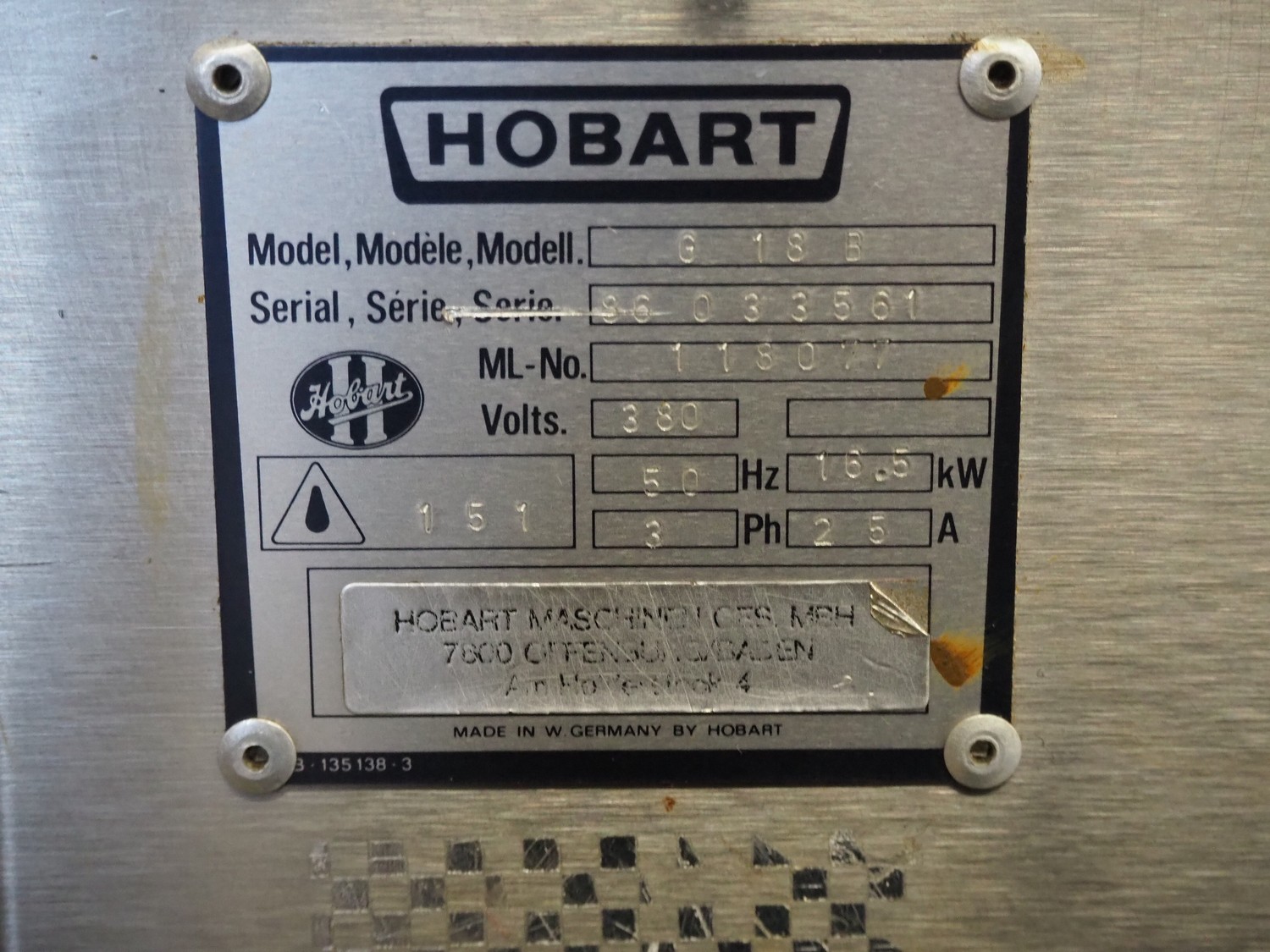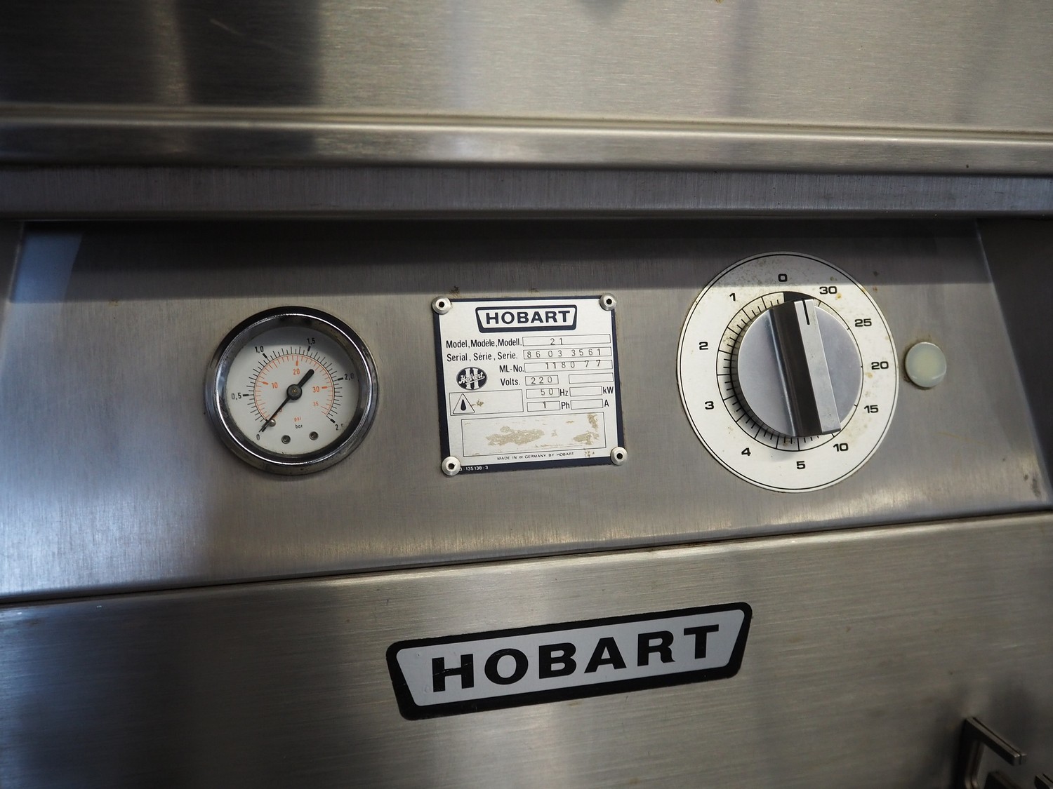 Hobart high speed cooker, model: 21, serial number: 86 033561, 380 V, 3 Ph, 50 Hz, 25 A, 16.5 kW, diameter infeed: 270 mm, inside dimensions: 370 mm x 280 mm x 280 mm, total dimensions: 850 mm x 460 mm x 1500 mm.