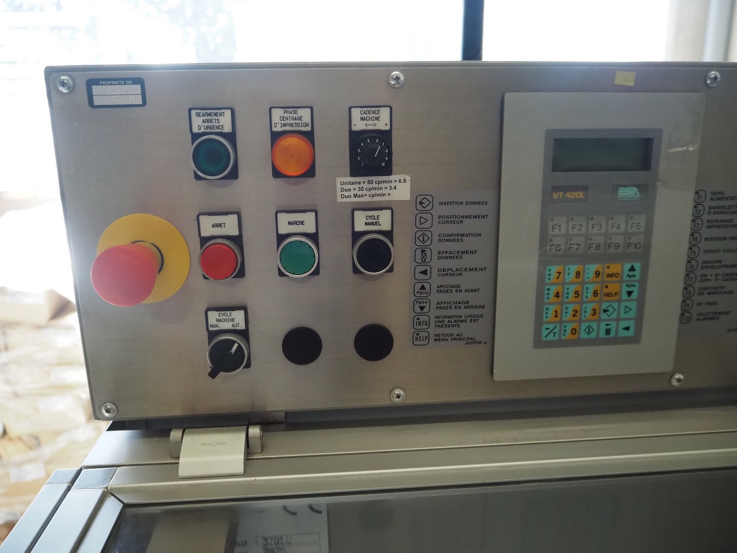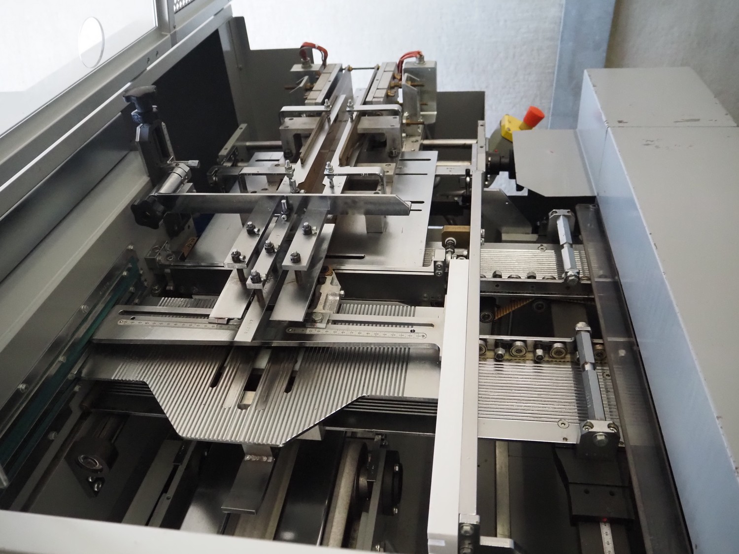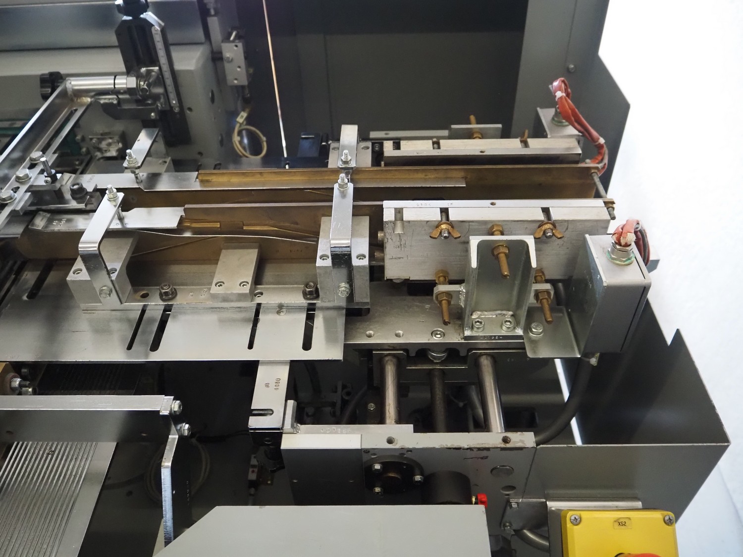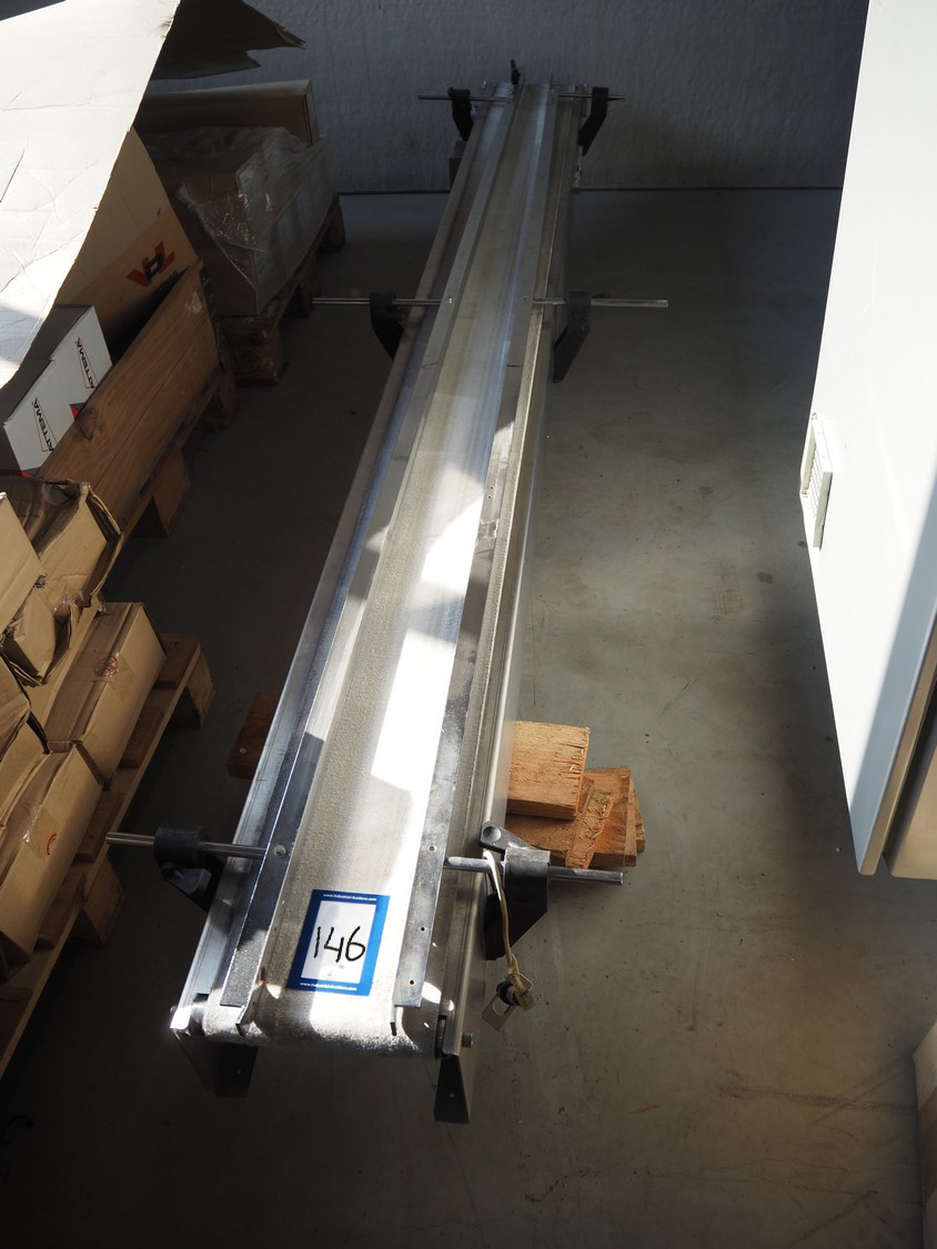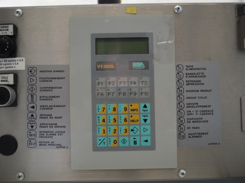 BFB S.p.A. overwrapping machine, model: 3701u, serial number: 3970, 380 V, 3 Ph, 50 Hz, 12 A, 10 kA, belt width: 190 mm, total dimensions: 2600 mm x 1500 mm x 1800 mm. Including transport belt, plastic belt, belt width: 200 mm, total dimensions: 2550 mm x 550 mm x 400 mm.
