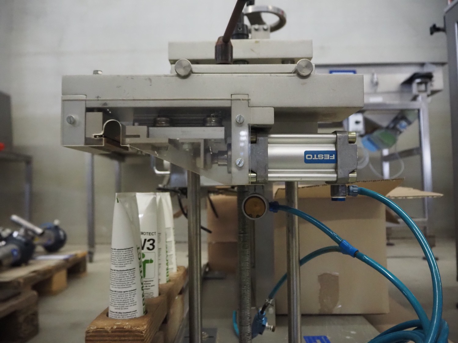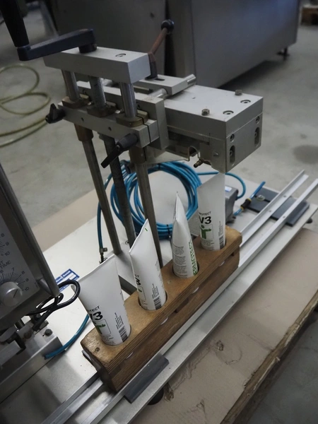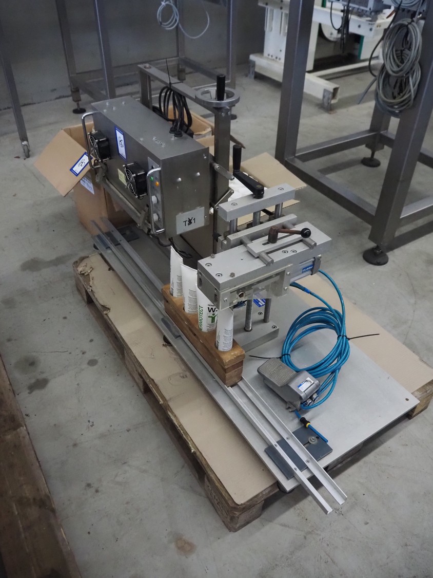 TechnoPack Hund GmbH tube sealing machine, type: TSG, machine number: 183, year of construction: 1995, seal length: 430 mm, total dimensions: 1300 mm x 500 mm x 800 mm. Including box with forms.