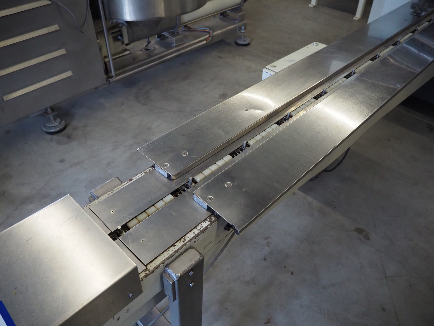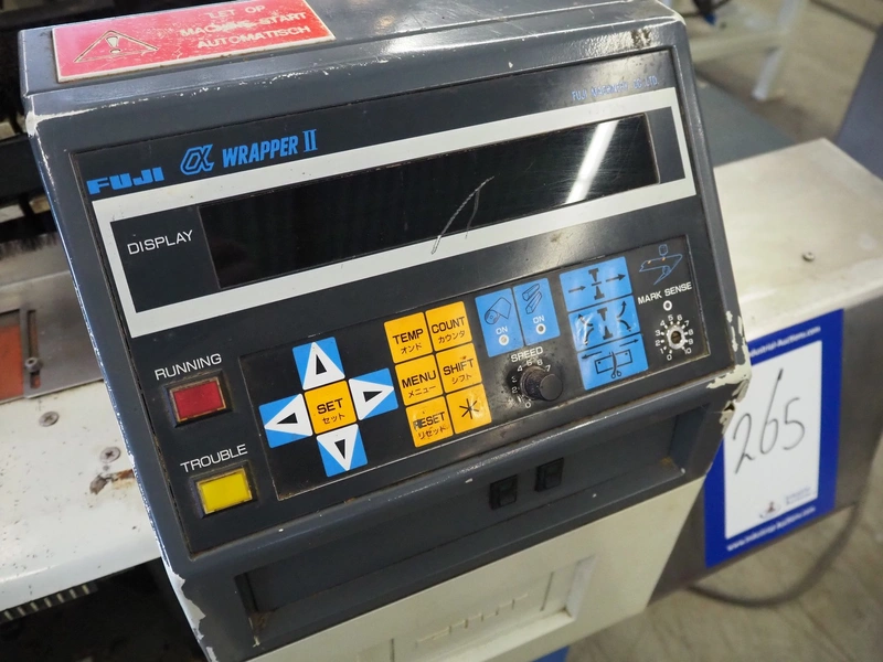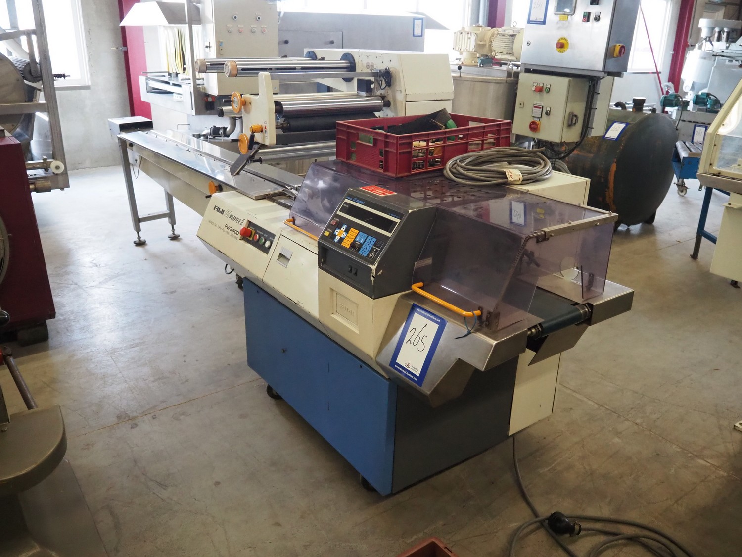 Fuji flowpacker, model: WRAPPER II, type: FW3400, seal width: 200 mm, plastic belt, belt width: 160 mm, total dimensions: 4400 mm x 1000 mm x 1500 mm.