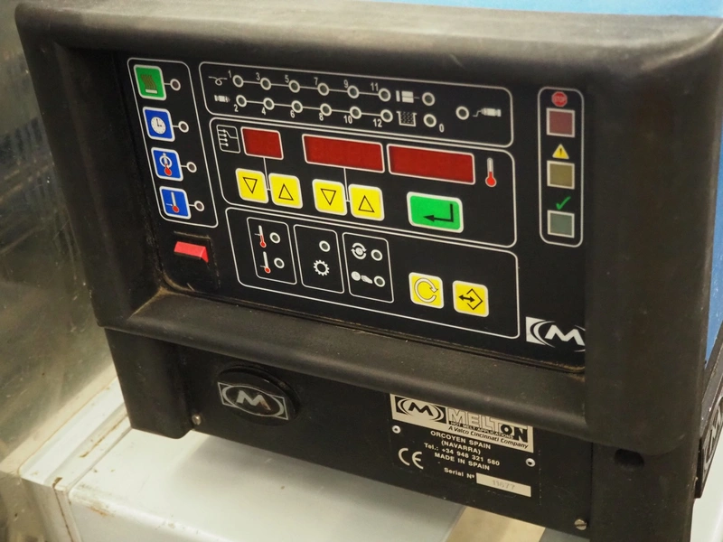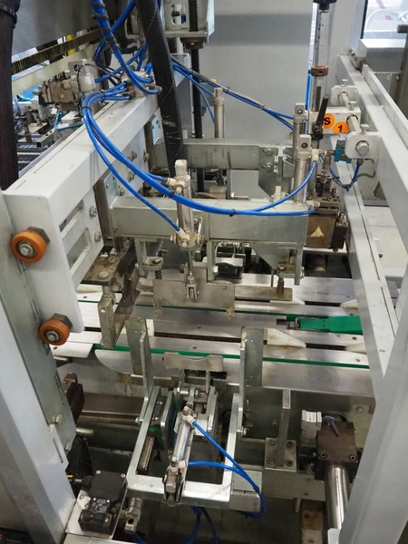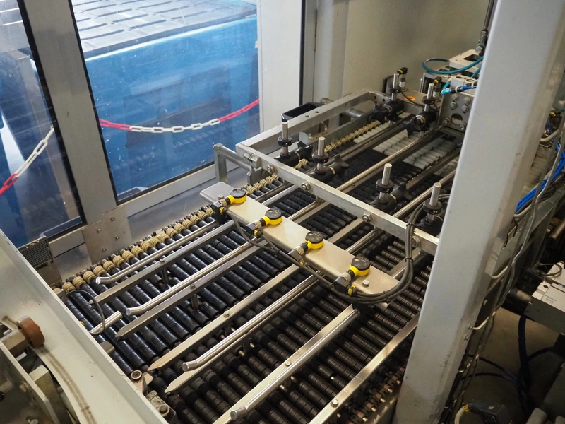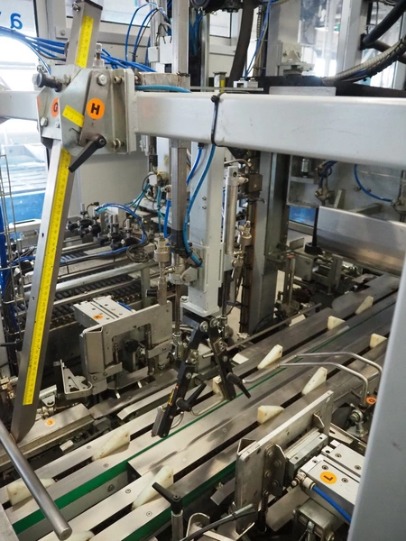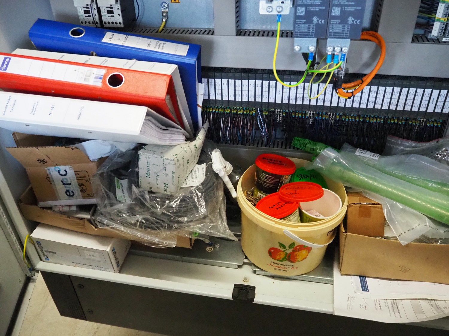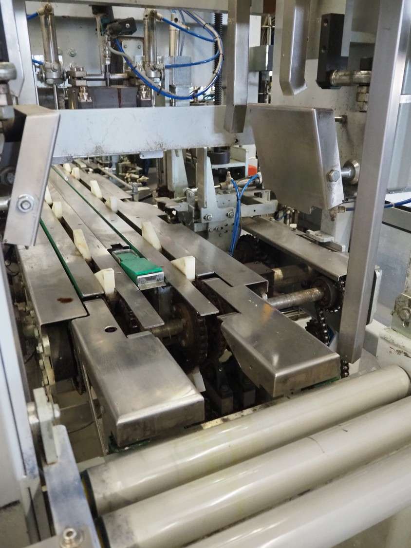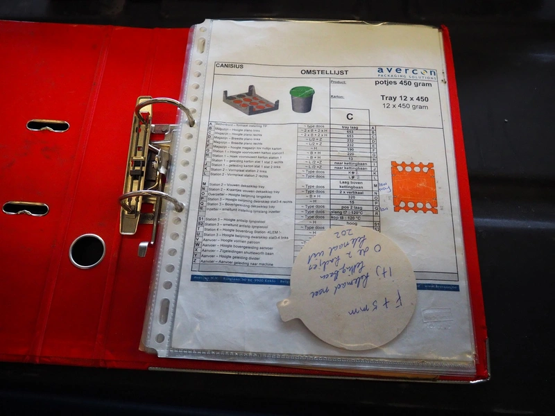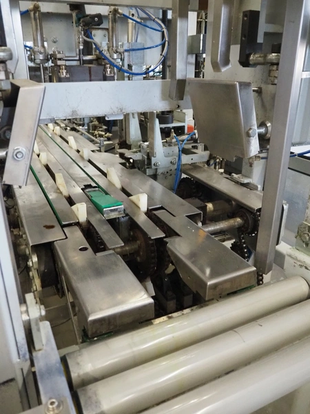 Avercon packaging machine, type: WRAP AROUND/TRAY PACKER, number: 663, year of construction: 2009, 380 V, 3 Ph, 50 Hz, 25 A, clearance denester: 480 mm x 560 mm, belt with dividers, clearance belt: 350 mm x 290 mm, plastic rollers, roller width: 550 mm, total dimensions: 4100 mm x 2700 mm x 2420 mm. Product: Apple sirup, 2 types of trays: 350 gram, Ø 94 mm, height: 82 mm, speed: 80 pcs / minute and 450 gram, Ø 94 mm, height: 103 mm, speed: 80 pcs/minute,
