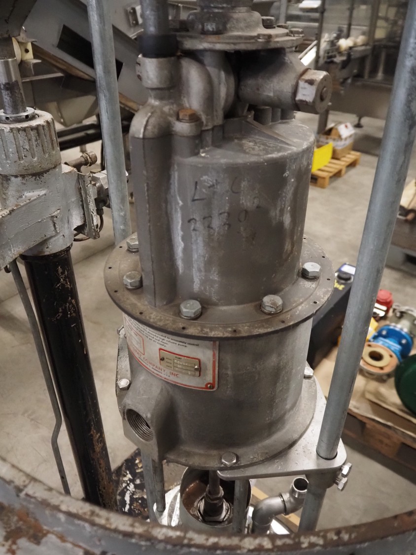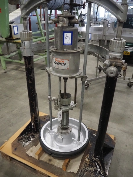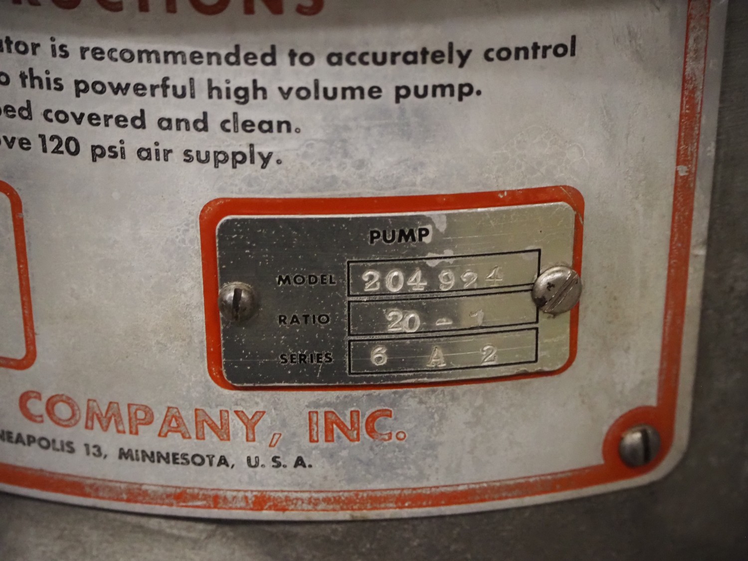Gray Company, Inc. pneumatic barrel pump, model power head: 204640, series: 6B2, model pump: 204924, series: 6 A 2, ratio: 20-1, dimensions: 1200 mm x 800 mm x 1650 mm.