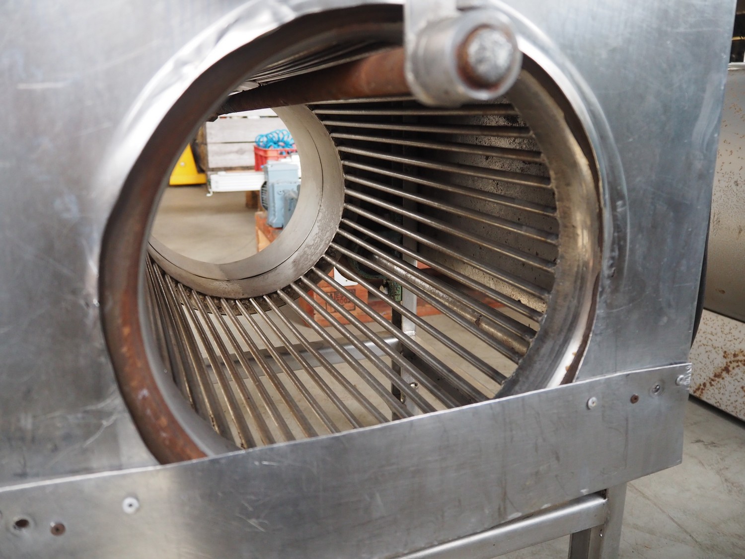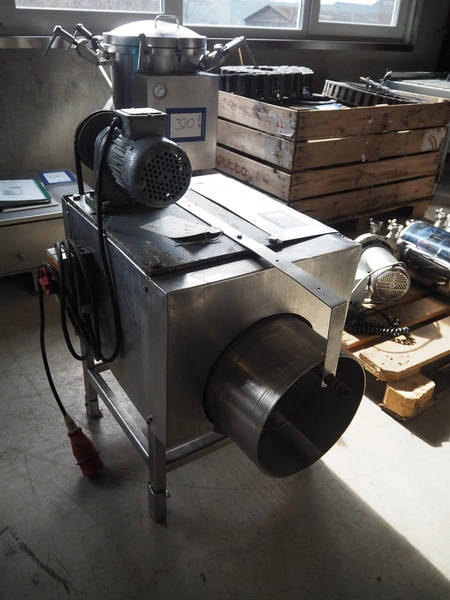 S/s sieve, diameter sieve: 270 mm, length sieve: 450 mm, holes: 10 mm, total dimensions: 800 mm x 600 mm x 900 mm.