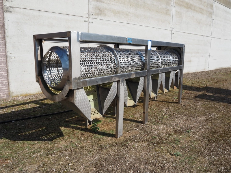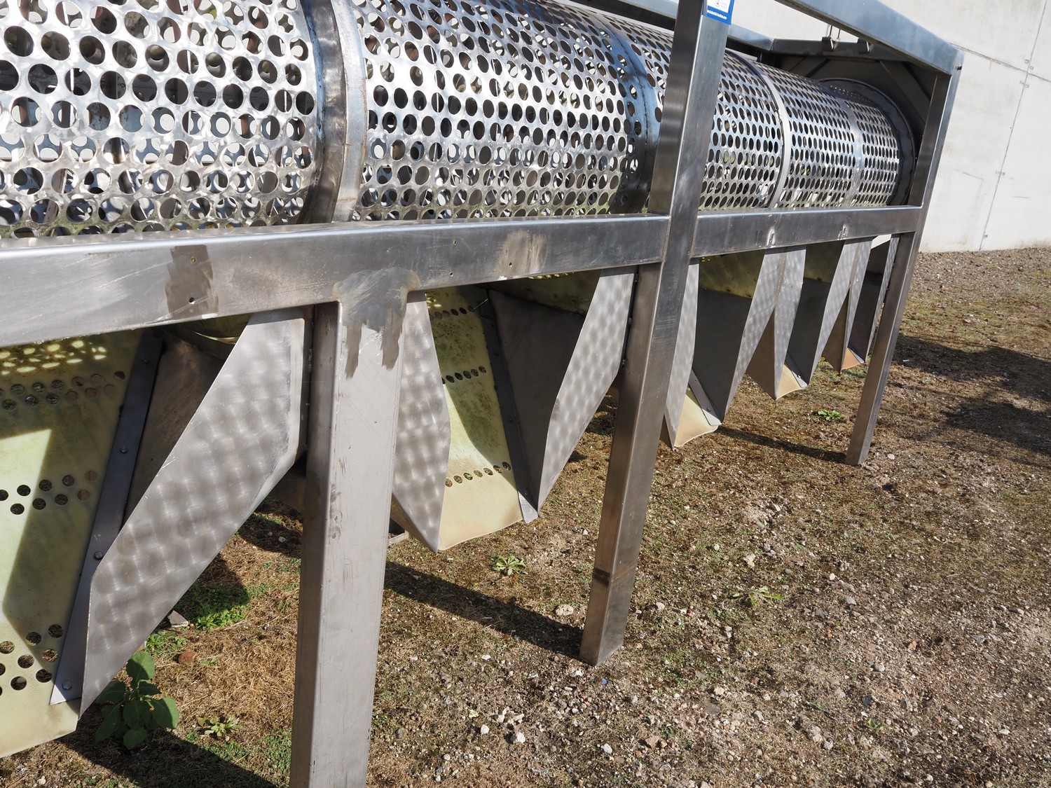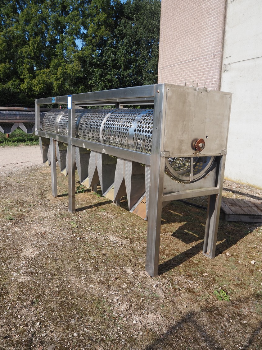 Ten Brink Epe s/s sorting drum with 5 outfeed stations, type: GS/6000, number: 8513, year of construction: 1985, 380 V, drum diameter: Ø 640 mm, total dimensions: 5000 mm x 900 mm x 1170 mm.