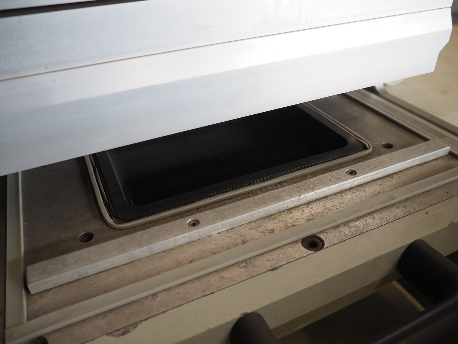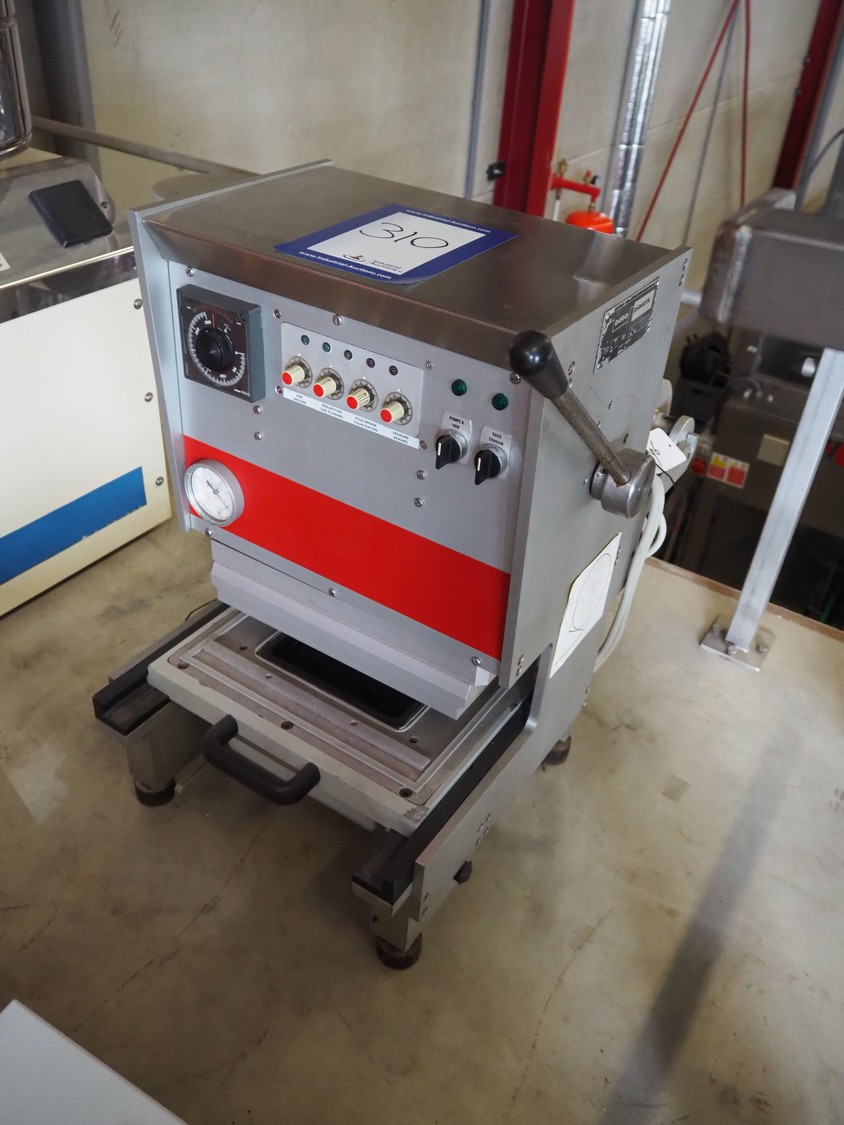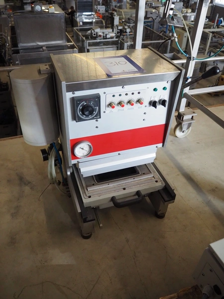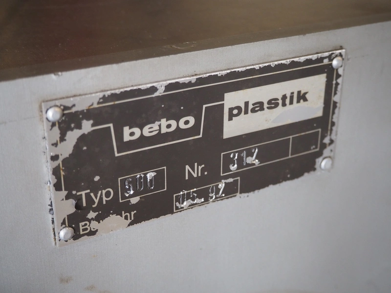 Bebo Plastik traysealer, type: 500, number: 312, year of construction: 05-92, film width: 360 mm, dimensions dye: 210 mm x 150 mm, total dimensions: 750 mm x 670 mm x 740 mm.