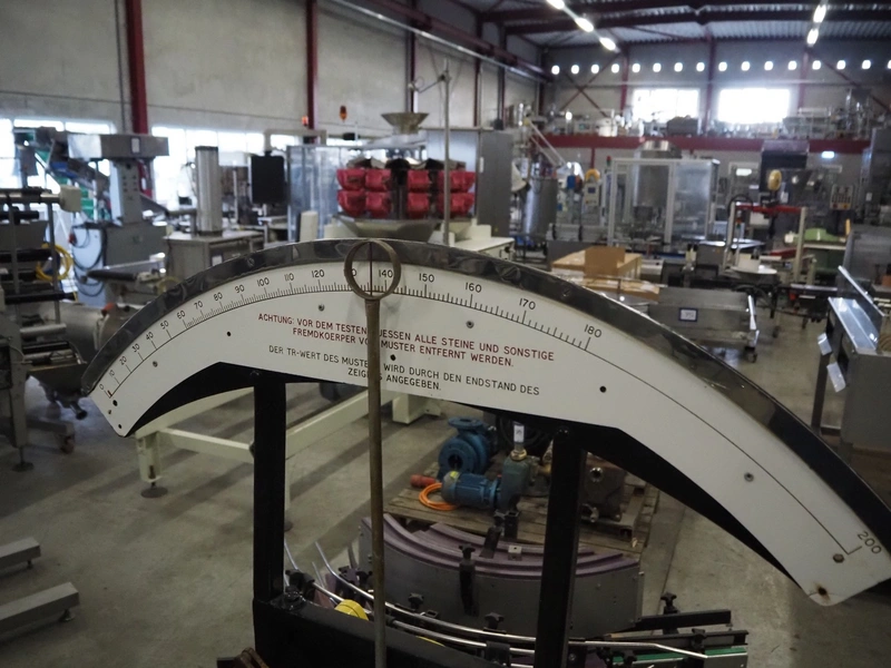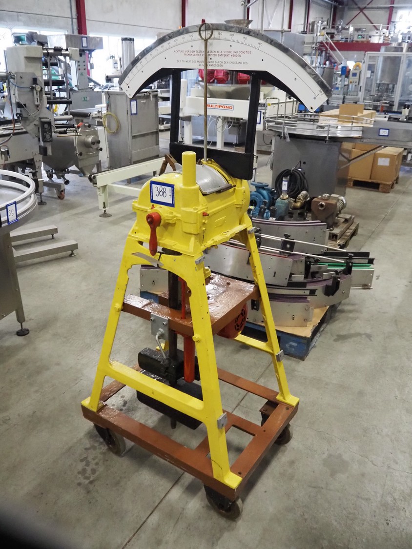 CML mobile hardness tester for peas, working width: 100 mm, maximum weight: 180 kg, total dimensions: 800 mm x 600 mm x 1750 mm.