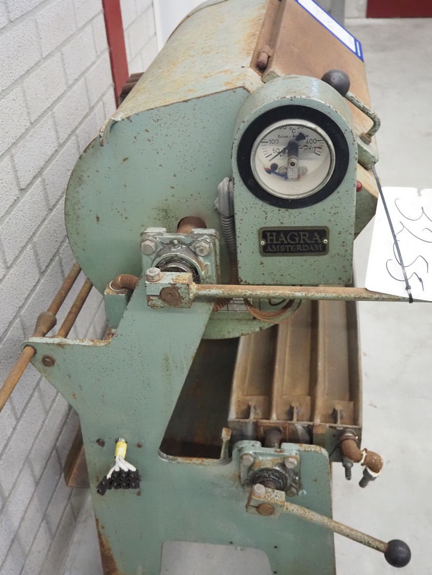 Hagra melting machine for lead, volume: 300 kg, 220-380 V, 3x 2400 W, maximum heat: 450° C, 3 forms, dimensions forms: (3x) 645 mm x 70 mm x 45 mm, total dimensions: 1200 mm x 650 mm x 1150 mm.