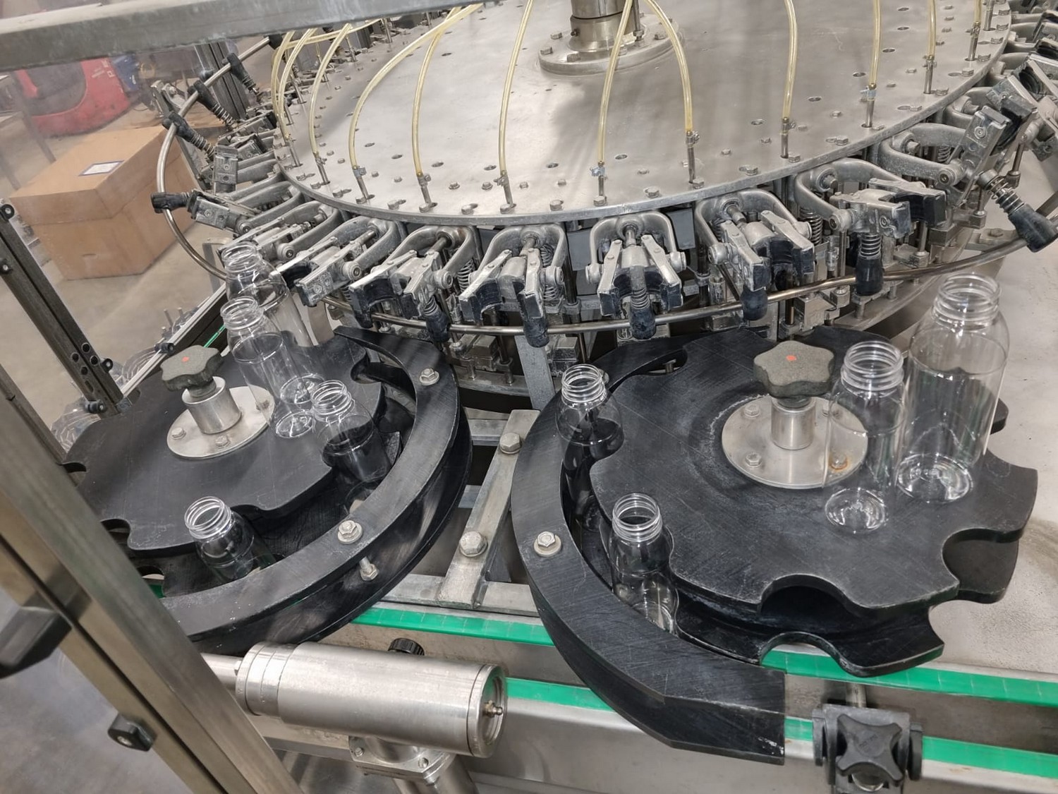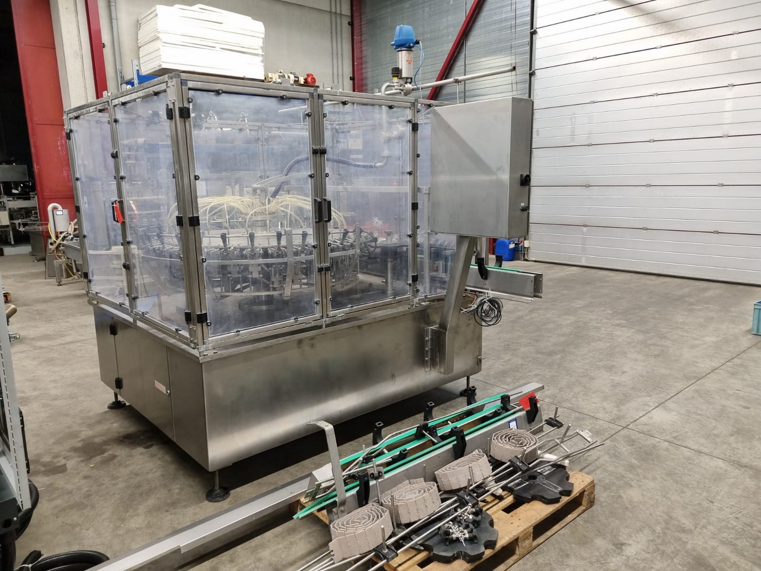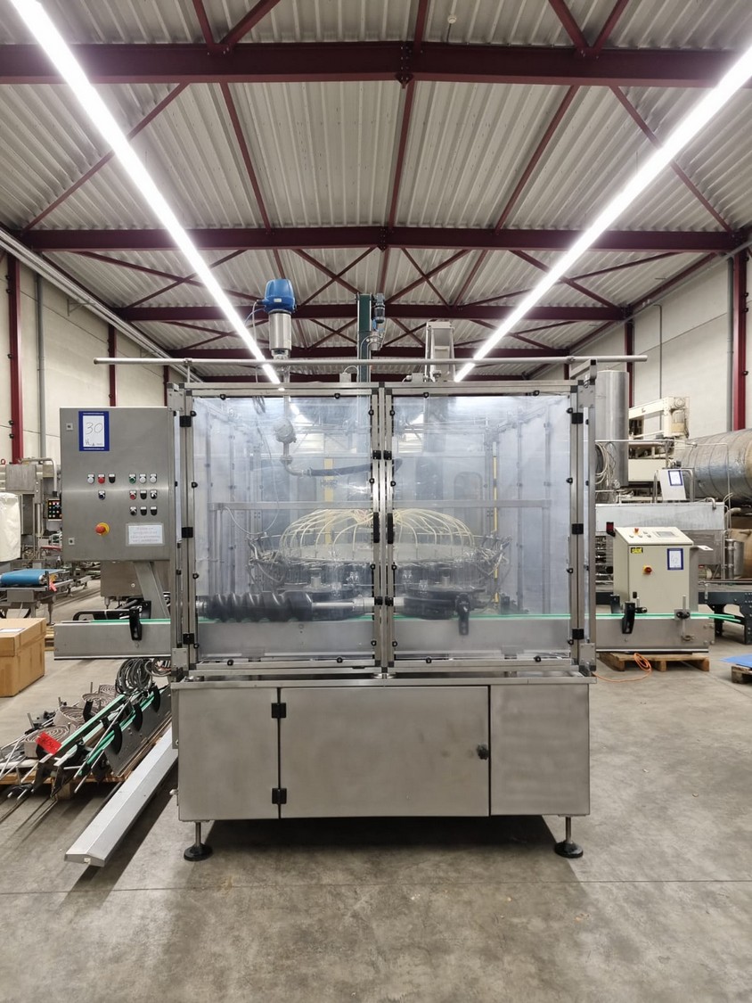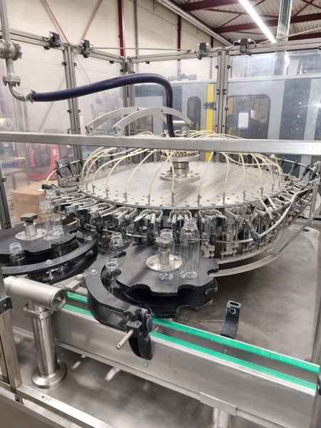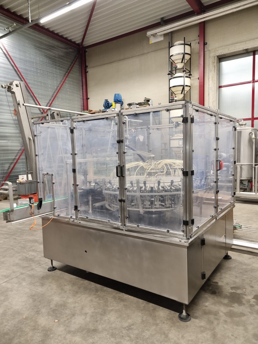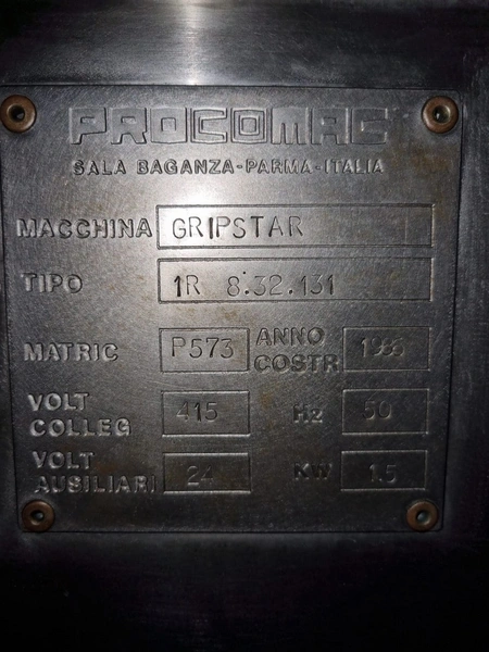 Procomac rinser for empty bottles, machine: GRIPSTAR, type: 1R 8.32.131, serial number: P573, year of construction; 1986, 415 V, 50 Hz, 1.5 kW, for bottles of 300 and 500 ml, 32 stations, total dimensions: 3100 mm x 2400 mm x 2300 mm. Including pallet with parts and Siemens control, dimensions pallet: 3100 mm x 1200 mm x 500 mm.