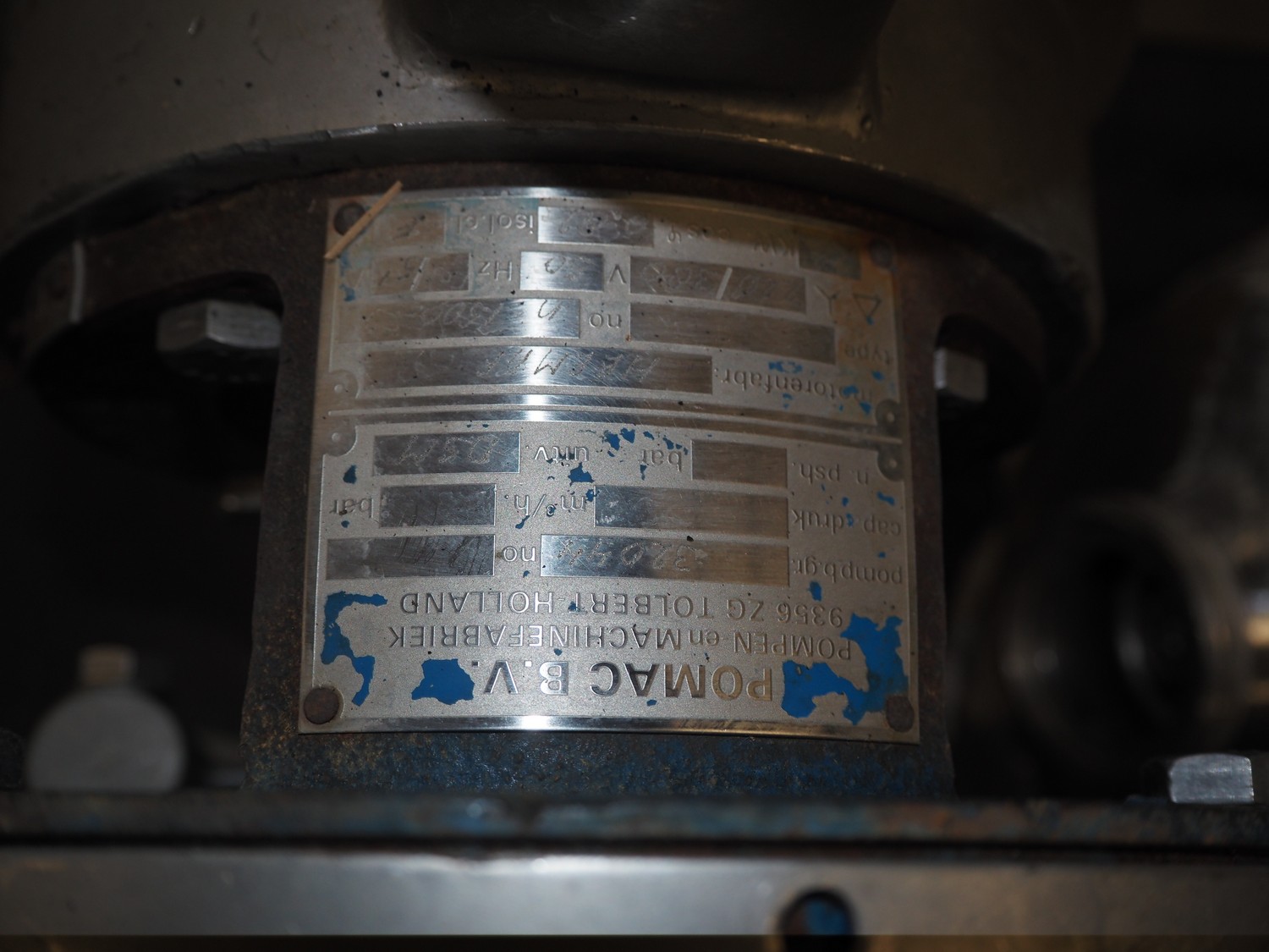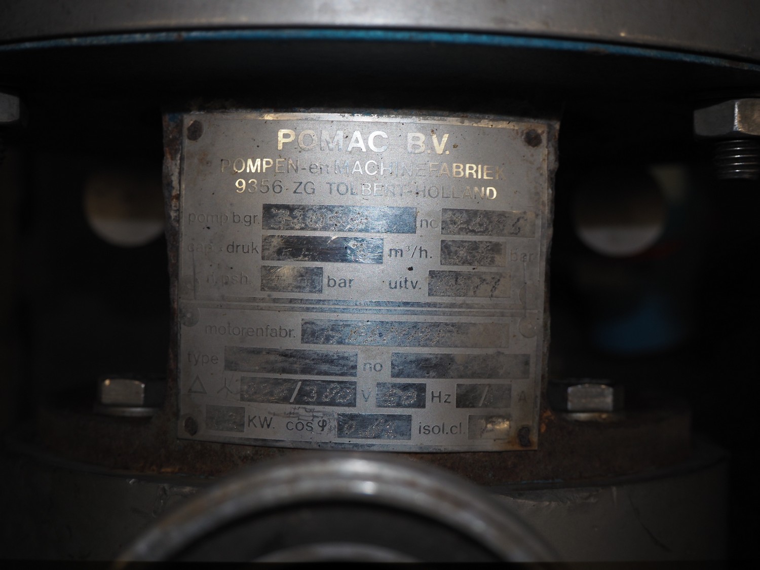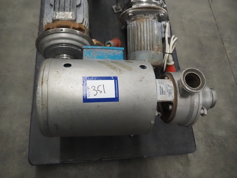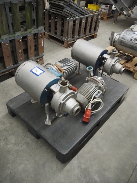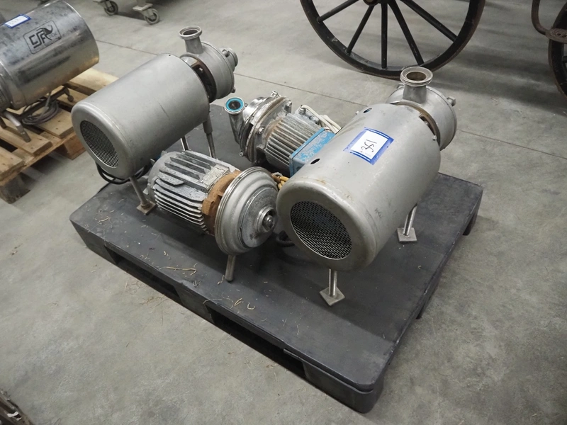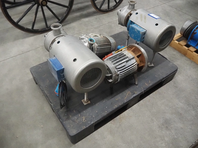Pallet with 4 centrifugal pumps, among others:2x Pomac B.V. pump and 1x Elmo pump, dimensions pallet:: 1200 mm x 800 mm x 600 mm.