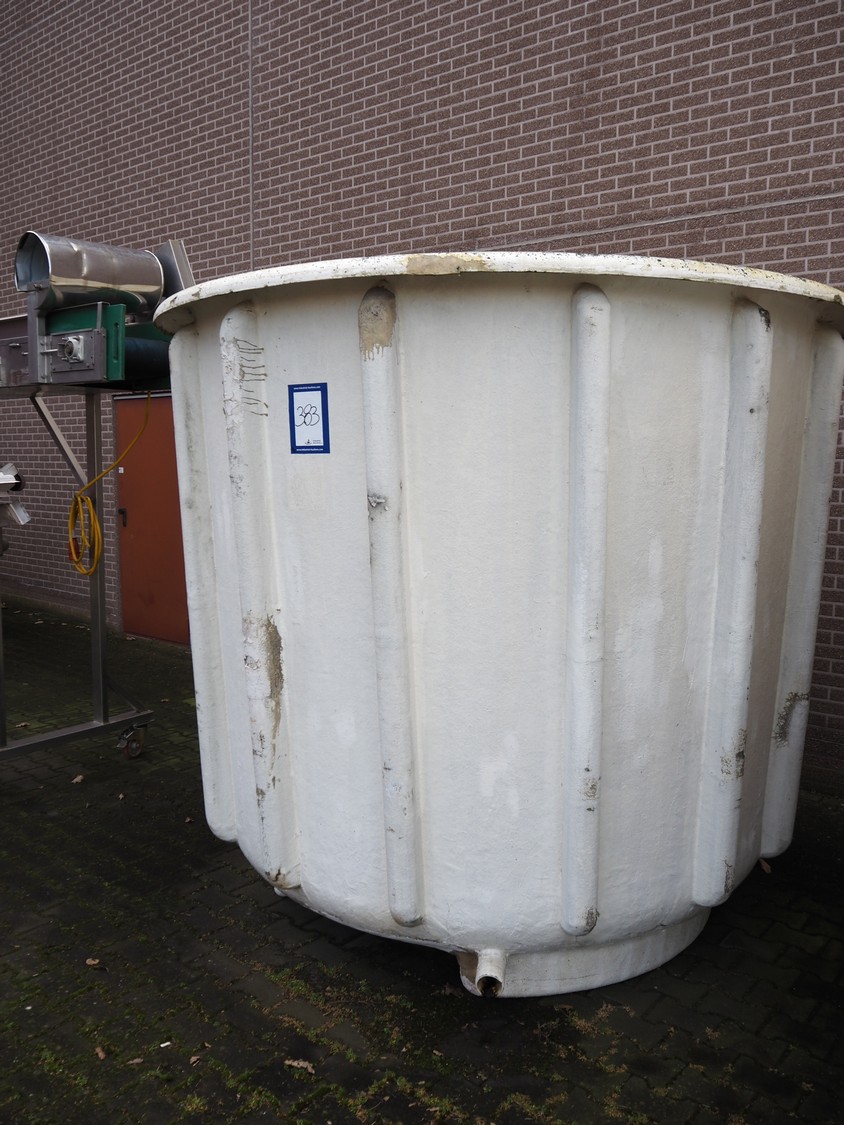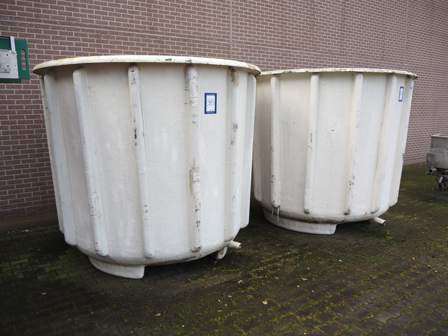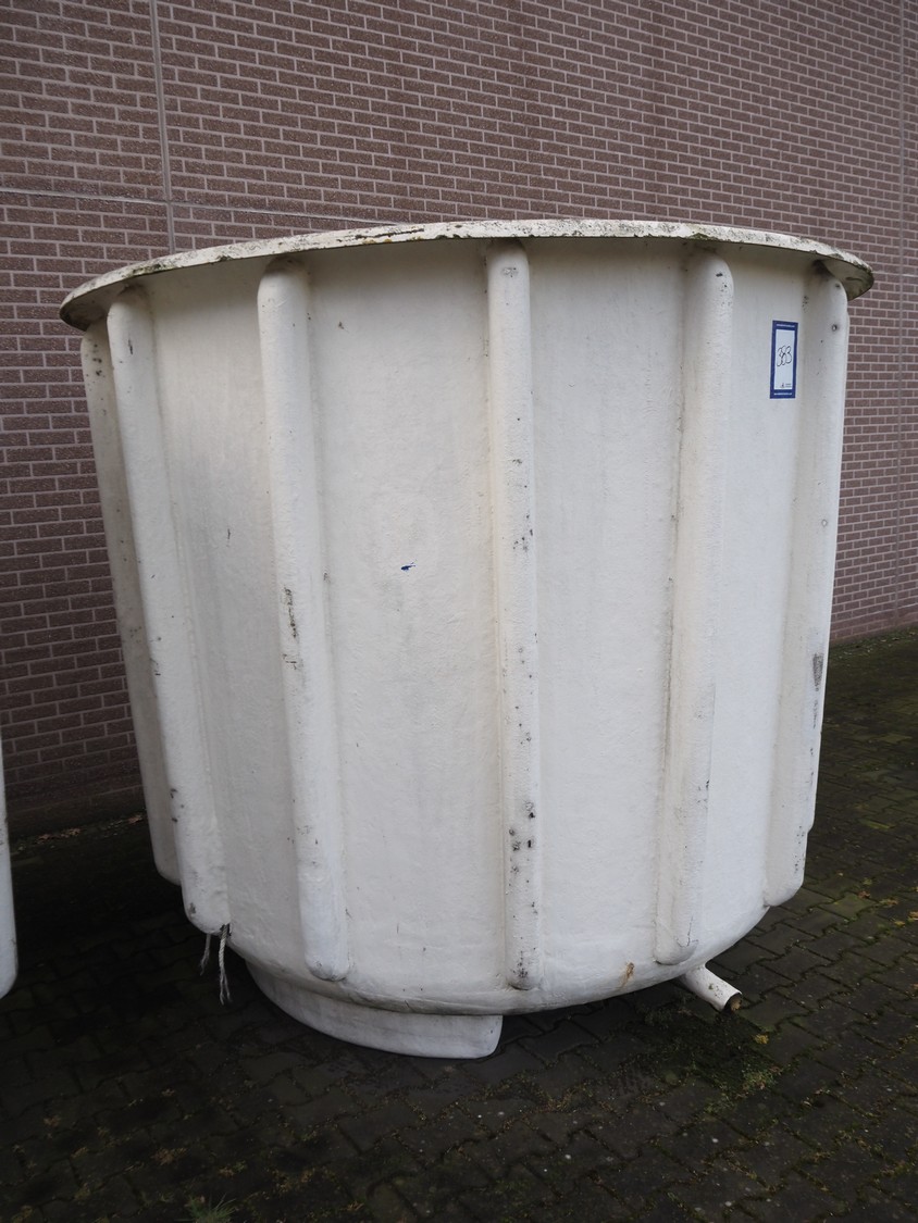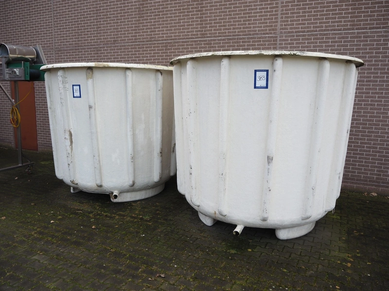 2 plastic tubs with drains, inside dimensions: (2x) 2450 mm x 2450 mm x 2000 mm, total dimensions: (2x) 2455 mm x 2455 mm x 2180 mm.