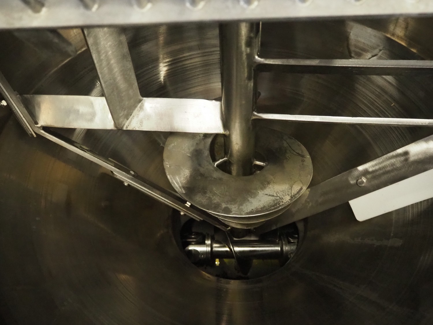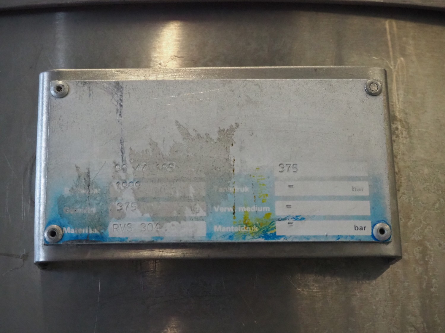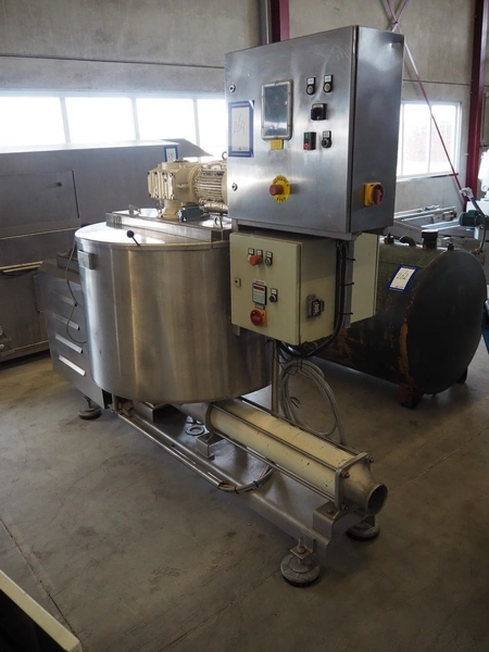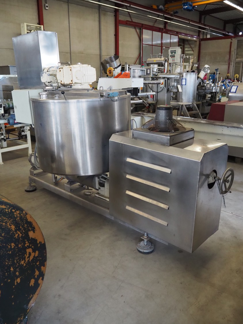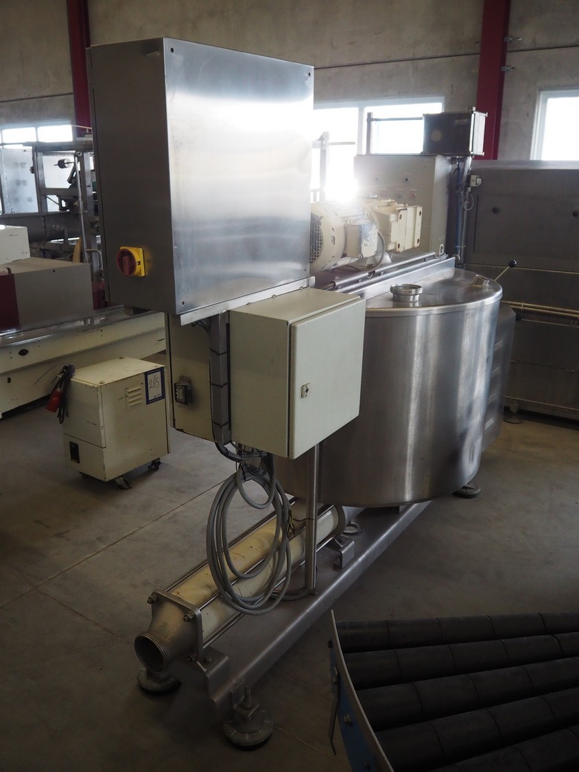 S/s mixing tank with agitator and outfeed pump, project number: 98 44 185, year of construction: 1999, weight: 375 kg, dimensions tank: Ø 1050 mm x 740 mm, total dimensions: 2750 mm x 1100 mm x 2000 mm.