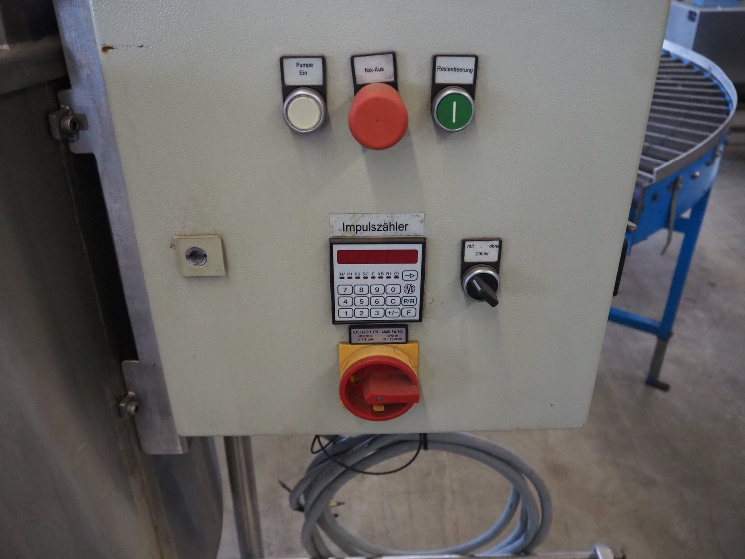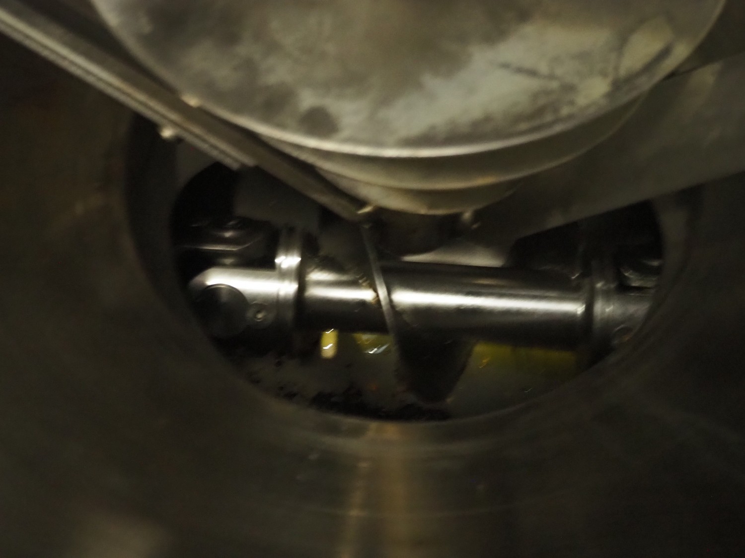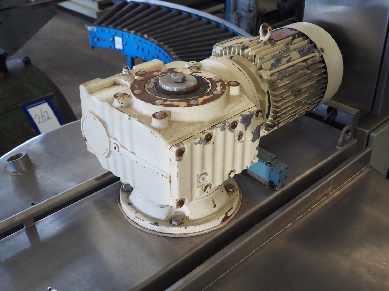 S/s mixing tank with agitator and outfeed pump, project number: 98 44 185, year of construction: 1999, weight: 375 kg, dimensions tank: Ø 1050 mm x 740 mm, total dimensions: 2750 mm x 1100 mm x 2000 mm.